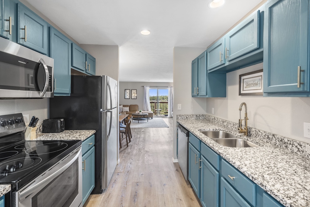 With a stay at this condo in Branson (Green Mountain), you'll be within a 5-minute drive of Highway 76 Strip and Table Rock Lake. This golf condo is 5 mi (8.1 km) from Silver Dollar City and 7.4 mi (12 km) from Branson Landing. Make yourself comfortable in this air-conditioned condo, featuring a kitchen with a refrigerator and an oven. There's a private balcony. Complimentary wireless internet access keeps you connected, and digital programming is available for your entertainment. Conveniences include a microwave and a coffee/tea maker. Distances are displayed to the nearest 0.1 mile and kilometer.