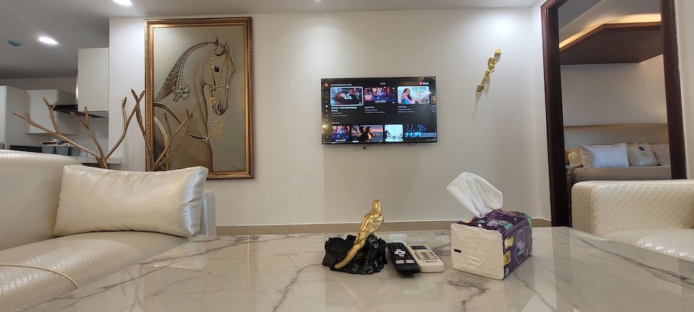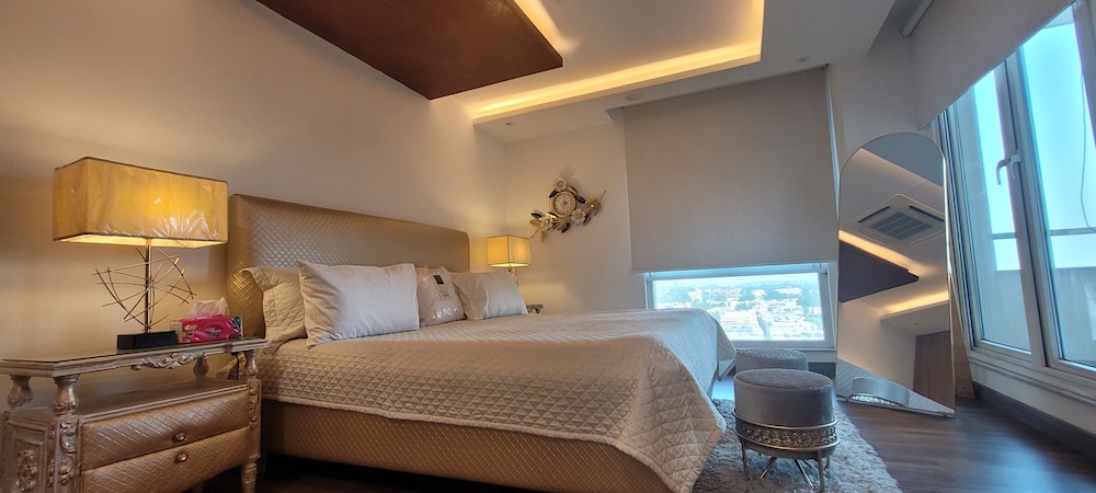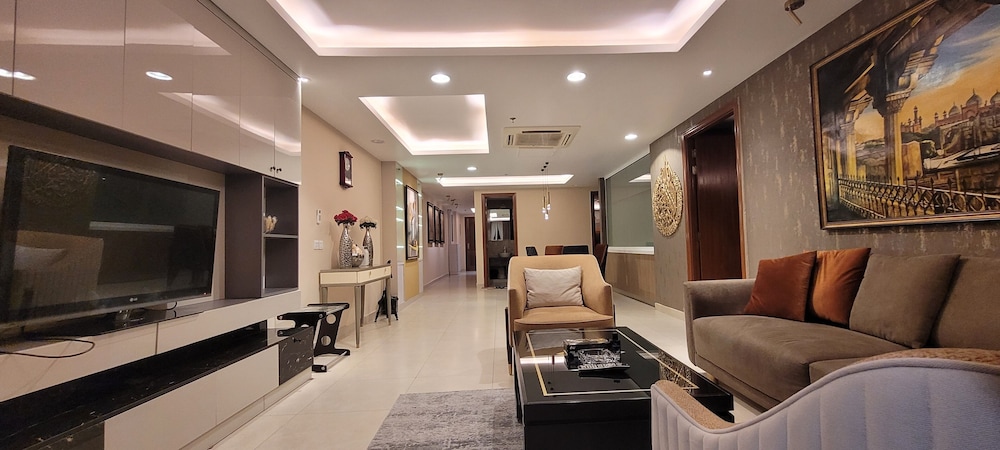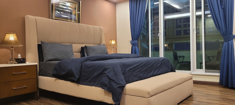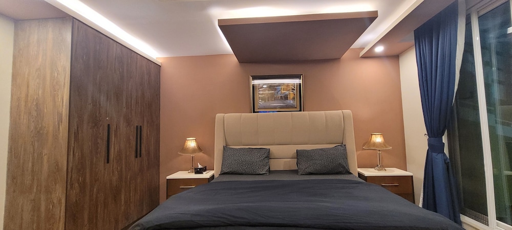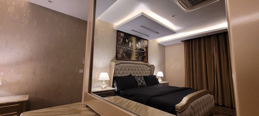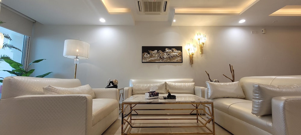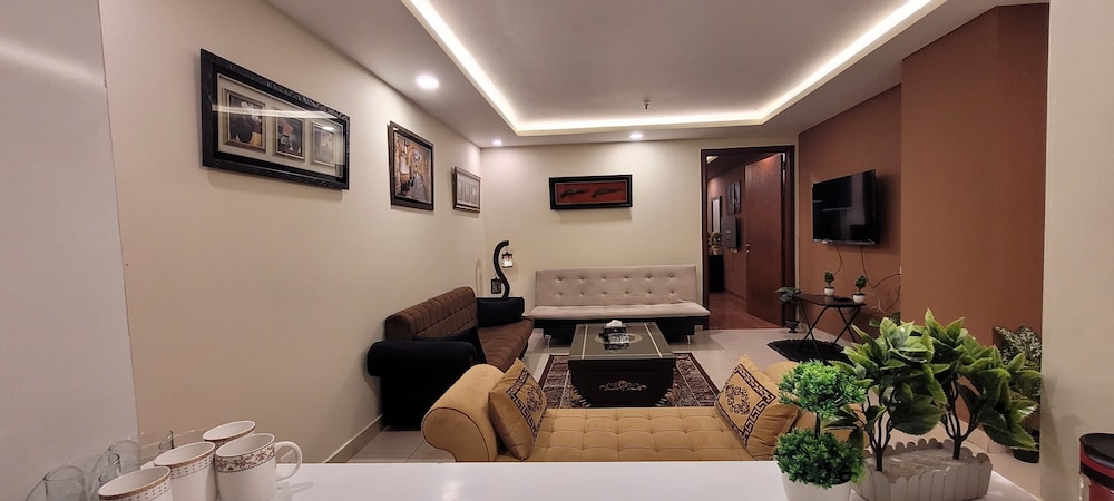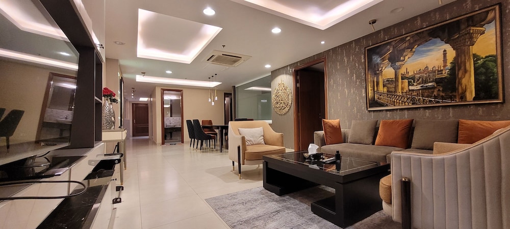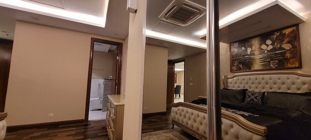 With a stay at Goldcrest Luxury Apartments, you'll be centrally located in Lahore, within a 10-minute drive of Packages Mall and M.M. Allam Road. This spa hotel is 6.2 mi (10 km) from Joyland and 6.2 mi (10 km) from Liberty Market. Make yourself at home in one of the 300 air-conditioned rooms featuring kitchens with full-sized refrigerators/freezers and ovens. Rooms have private furnished balconies or patios. 50-inch LED televisions with digital programming provide entertainment, while complimentary wireless internet access keeps you connected. Conveniences include desks and separate sitting areas, and housekeeping is provided on request. Distances are displayed to the nearest 0.1 mile and kilometer.