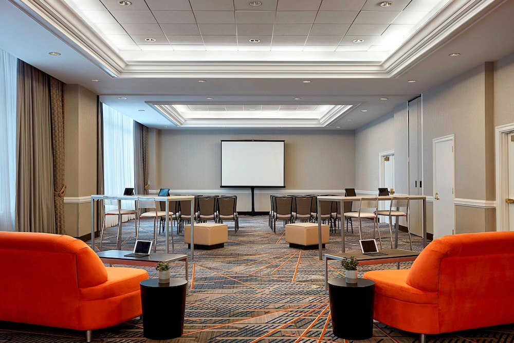 When you stay at New York Marriott at the Brooklyn Bridge in Brooklyn, you'll be in the business district, a 3-minute drive from Barclays Center Brooklyn and 5 minutes from Wall Street. This hotel is 2.4 mi (3.9 km) from Brooklyn Bridge and 2.6 mi (4.1 km) from Brooklyn Cruise Terminal. Make yourself at home in one of the 666 individually furnished guestrooms, featuring refrigerators and Smart televisions. Your pillowtop bed comes with premium bedding. Cable programming and video-game consoles are provided for your entertainment, while wireless internet access (surcharge) keeps you connected. Private bathrooms with shower/tub combinations feature designer toiletries and hair dryers. Distances are displayed to the nearest 0.1 mile and kilometer.