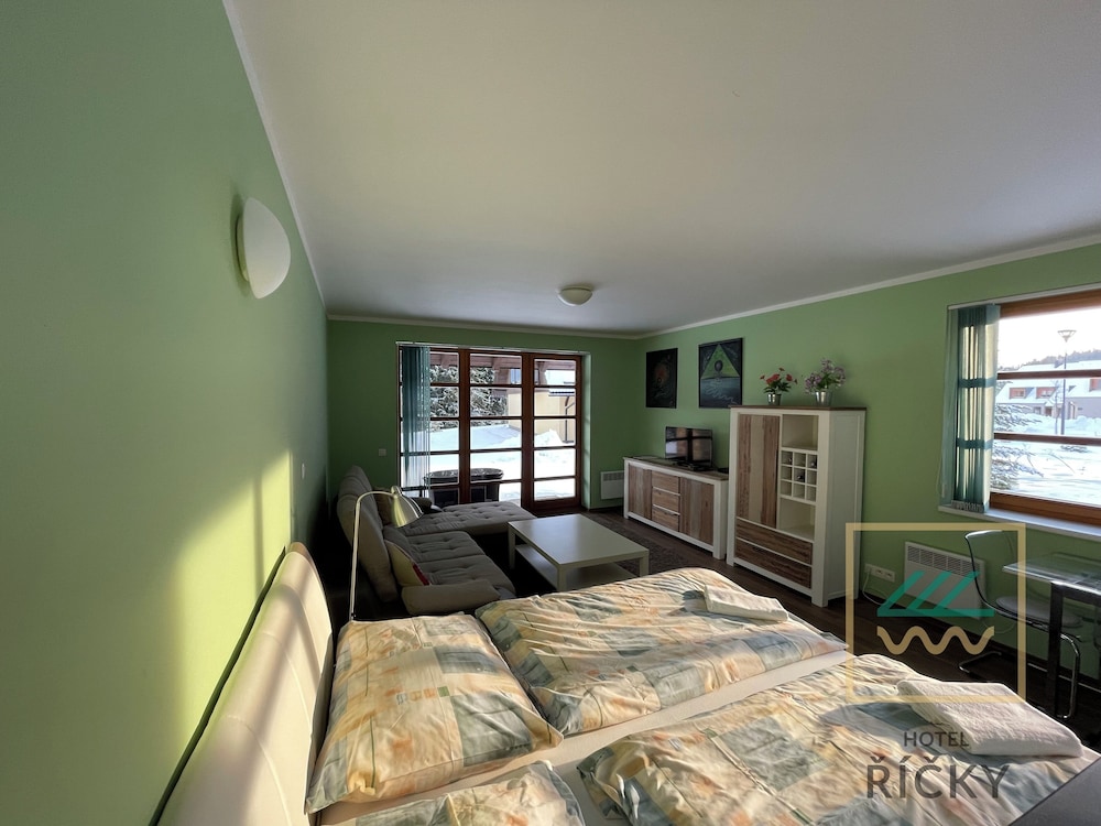 When you stay at Wellness hotel Říčky in Říčky v Orlických horách, you'll be next to a golf course and 8 minutes by car from Ski center Říčky in Orlické Mountains. This family-friendly hotel is 7.9 mi (12.8 km) from Hanička Fortress - Artillery Block R-S 79 and 8.4 mi (13.5 km) from Anna Lookout Tower. Make yourself at home in one of the 19 guestrooms featuring refrigerators and flat-screen televisions. Complimentary wireless internet access keeps you connected, and digital programming is available for your entertainment. Bathrooms feature bathtubs or showers, complimentary toiletries, and hair dryers. Conveniences include desks and separate sitting areas, and housekeeping is provided daily. Distances are displayed to the nearest 0.1 mile and kilometer.
