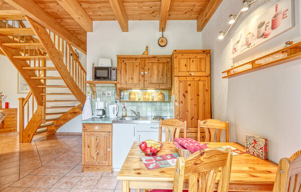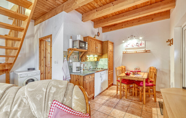The holiday home with two separate holiday apartments is located on the landlord's 800 square metre residential property on the quiet outskirts of Stolpe. It is about 1 km to the bathing area on the Szczecin Lagoon and about 800 metres to the local restaurant and bakery. Your flat is equipped with a living and dining room with upholstered furniture, flat-screen TV, radio and an open-plan kitchen with kitchenette and electric cooker. Refrigerator, various small kitchen appliances and dining area as well as a bathroom with WC and shower. The two bedrooms are accessible via a staircase. One room is furnished with a double bed, the other room with 2 single beds. The apartments are equipped with underfloor heating in the lower area, central heating in the upper area and insect screens in front of the bedroom windows. At your disposal: Cot (on request), WLAN, washing machine, tumble dryer on request, furnished terrace with barbecue (per flat), sun loungers (1 per flat), car park, large play and sunbathing area on the property. The total price includes: Bed linen, tea towels, water and energy consumption. You must bring your own towels. Pets are allowed: One small dog up to a size of 40 cm is allowed in this accommodation.