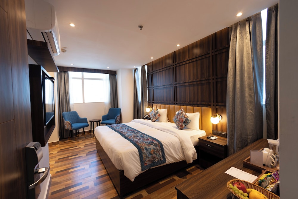 With a stay at Hyphen Business Hotel in Noida (Sector 62), you'll be within a 10-minute drive of Shipra Mall and Nodia Golf Course. This hotel is 13.4 mi (21.6 km) from Chandni Chowk and 10 mi (16.2 km) from Lajpat Nagar Central Market. Make yourself at home in one of the 56 guestrooms. Complimentary wireless internet access keeps you connected, and cable programming is available for your entertainment. Private bathrooms with showers feature complimentary toiletries and slippers. Conveniences include phones, as well as safes and coffee/tea makers. Distances are displayed to the nearest 0.1 mile and kilometer.