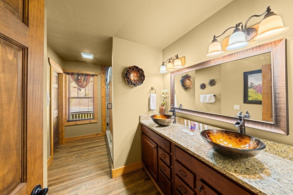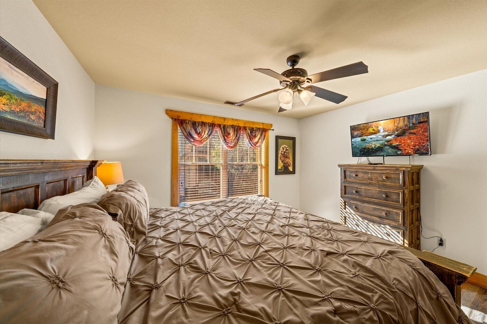 When you stay at this chalet in Gatlinburg, you'll be in the mountains, within a 10-minute drive of Anakeesta and Ripley's Aquarium of the Smokies. This chalet is 4.7 mi (7.6 km) from Great Smoky Mountains National Park and 11.5 mi (18.5 km) from Island at Pigeon Forge. There's a private furnished balcony/patio. A kitchen is outfitted with a refrigerator, an oven, and a stovetop. Wired and wireless internet access is complimentary, while a 70-inch flat-screen television with cable programming provides entertainment. A private bathroom has a jetted bathtub and designer toiletries. Conveniences include a desk and a microwave. Distances are displayed to the nearest 0.1 mile and kilometer.