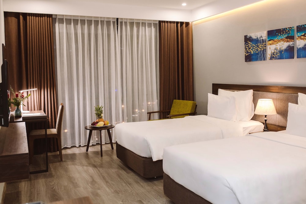 With a stay at Reyna Hotel Hanoi in Hanoi (Nam Từ Liêm), you'll be within a 15-minute drive of Hoan Kiem Lake and West Lake. This spa hotel is 6.4 mi (10.3 km) from St. Joseph's Cathedral of Hanoi and 6.7 mi (10.7 km) from Hanoi Old Town Night Market. Make yourself at home in one of the 88 air-conditioned rooms featuring minibars and flat-screen televisions. Complimentary wireless internet access is available to keep you connected. Bathrooms feature bathtubs or showers, complimentary toiletries, and hair dryers. Conveniences include phones, as well as desks and complimentary newspapers. Distances are displayed to the nearest 0.1 mile and kilometer.