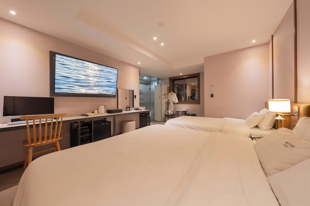 With a stay at Hotel Button in Busan (Seo), you'll be steps from Nampodong Street and 5 minutes by foot from Gukje Market. This hotel is 0.3 mi (0.5 km) from Bupyeong Kkangtong Market and 0.4 mi (0.7 km) from BIFF Square. Make yourself at home in one of the 33 air-conditioned rooms featuring heated floors and flat-screen televisions. Computers with complimentary wired and wireless internet keep you connected, and cable programming is available for entertainment. Conveniences include separate sitting areas and coffee/tea makers, as well as phones with free local calls. Distances are displayed to the nearest 0.1 mile and kilometer.