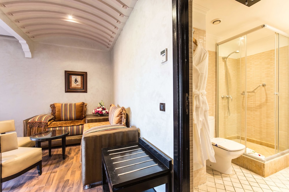 With a stay at Almas Hotel, you'll be centrally located in Marrakech, within a 5-minute drive of Jemaa el-Fnaa and Majorelle Garden. This hotel is 0.2 mi (0.3 km) from Grand Poste Gueliz and 0.2 mi (0.4 km) from Place du 16 November. Make yourself at home in one of the 70 guestrooms featuring minibars and flat-screen televisions. Your bed comes with down comforters and Frette Italian sheets. Complimentary wireless internet access keeps you connected, and satellite programming is available for your entertainment. Bathrooms feature showers with rainfall showerheads and complimentary toiletries. Distances are displayed to the nearest 0.1 mile and kilometer.