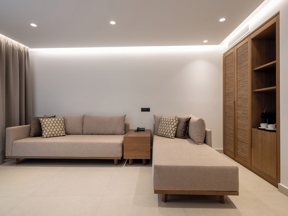 When you stay at Galaxy Suites Boutique Resort in Hersonissos, you'll be in the entertainment district, a 2-minute drive from Star Beach Water Park and 8 minutes from Stalis Beach. This luxury aparthotel is 1.1 mi (1.8 km) from Aquaworld Aquarium and 1.2 mi (1.9 km) from Sarakino. Make yourself at home in one of the 57 individually decorated guestrooms, featuring refrigerators and espresso makers. Rooms have private balconies or patios. 40-inch LCD televisions with cable programming provide entertainment, while complimentary wireless internet access keeps you connected. Bathrooms feature bathtubs or showers, complimentary toiletries, and hair dryers. Distances are displayed to the nearest 0.1 mile and kilometer.