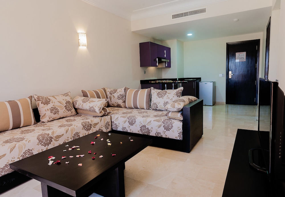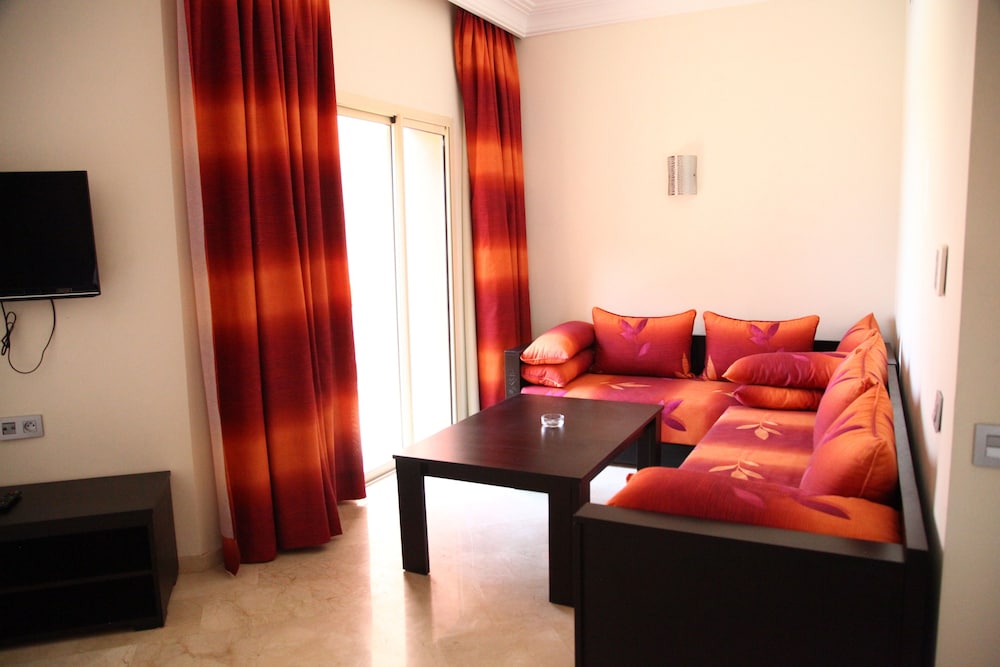 With a stay at Palm Appart Club Marrakech in Marrakech (Agdal), you'll be within a 10-minute drive of Jemaa el-Fnaa and Agdal Gardens. This 4-star hotel is 3.9 mi (6.3 km) from Majorelle Gardens and 1 mi (1.6 km) from Avenue Mohamed VI. Stay in one of 107 guestrooms featuring LCD televisions. Satellite television is provided for your entertainment. Bathrooms with bathtubs or showers are provided. Conveniences include phones, as well as safes and separate sitting areas. Distances are displayed to the nearest 0.1 mile and kilometer.