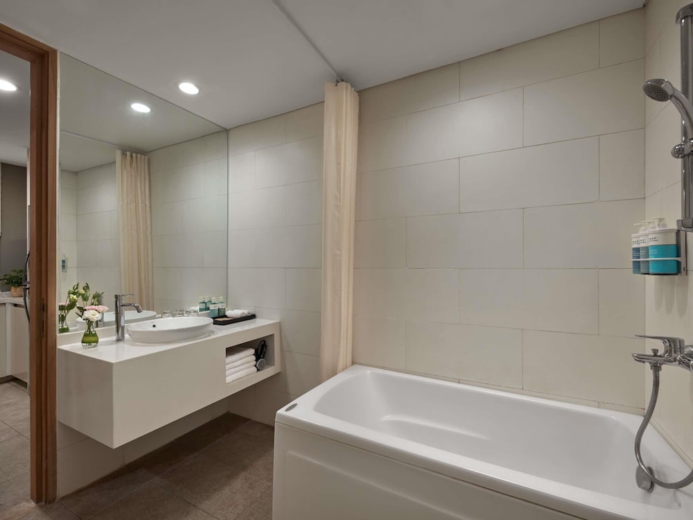 Located in Ho Chi Minh City (District 7), Novotel Living Saigon South is a 3-minute walk from Saigon Exhibition and Convention Center and 7 minutes by foot from The Cresent Mall. This hotel is 0.6 mi (1 km) from FV Hospital and 4.3 mi (6.9 km) from Ho Chi Minh City Museum of Fine Arts. Make yourself at home in one of the 174 guestrooms, featuring kitchens with refrigerators and microwaves. Wired and wireless internet access is complimentary, and flat-screen televisions with cable programming provide entertainment. Private bathrooms with shower/tub combinations feature deep soaking bathtubs. Conveniences include safes and desks, and you can also request rollaway/extra beds (surcharge). Distances are displayed to the nearest 0.1 mile and kilometer.