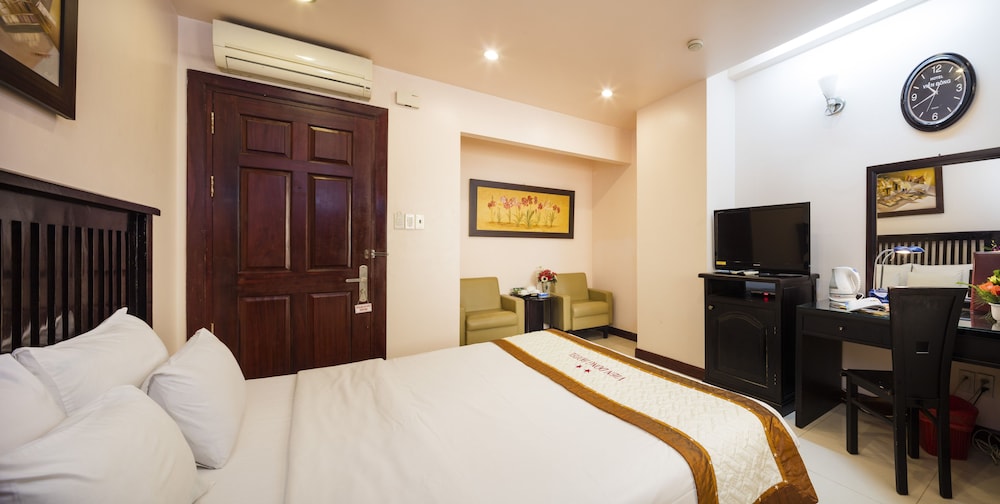 With a stay at Vien Dong Hotel Phu My Hung in Ho Chi Minh City (District 7), you'll be within a 5-minute drive of SC VivoCity and The Cresent Mall. This family-friendly hotel is 1.2 mi (2 km) from Starlight Bridge and 1.3 mi (2.1 km) from Saigon Exhibition and Convention Center. Make yourself at home in one of the 34 guestrooms featuring minibars (stocked with some free items) and flat-screen televisions. Your room comes with a memory foam bed. Complimentary wired and wireless internet access keeps you connected, and cable programming provides entertainment. Bathrooms have deep soaking bathtubs and rainfall showerheads. Distances are displayed to the nearest 0.1 mile and kilometer.