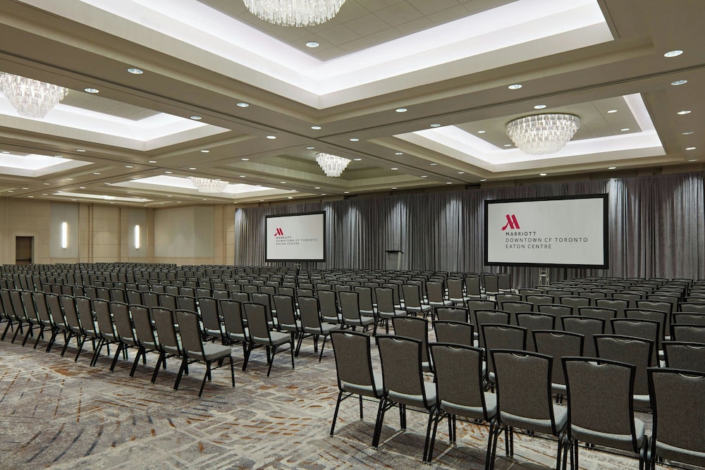 Marriott Downtown at CF Toronto Eaton Centre is centrally located in Toronto, a 3-minute walk from CF Toronto Eaton Centre and 6 minutes by foot from Ryerson University. This hotel is 0.8 mi (1.3 km) from Scotiabank Arena and 1 mi (1.7 km) from Metro Toronto Convention Centre. Make yourself at home in one of the 461 guestrooms featuring refrigerators and Smart televisions. Your pillowtop bed comes with down comforters and premium bedding. Cable programming provides entertainment, and wired and wireless internet access is available for a surcharge. Private bathrooms with showers feature designer toiletries and hair dryers. Distances are displayed to the nearest 0.1 mile and kilometer.