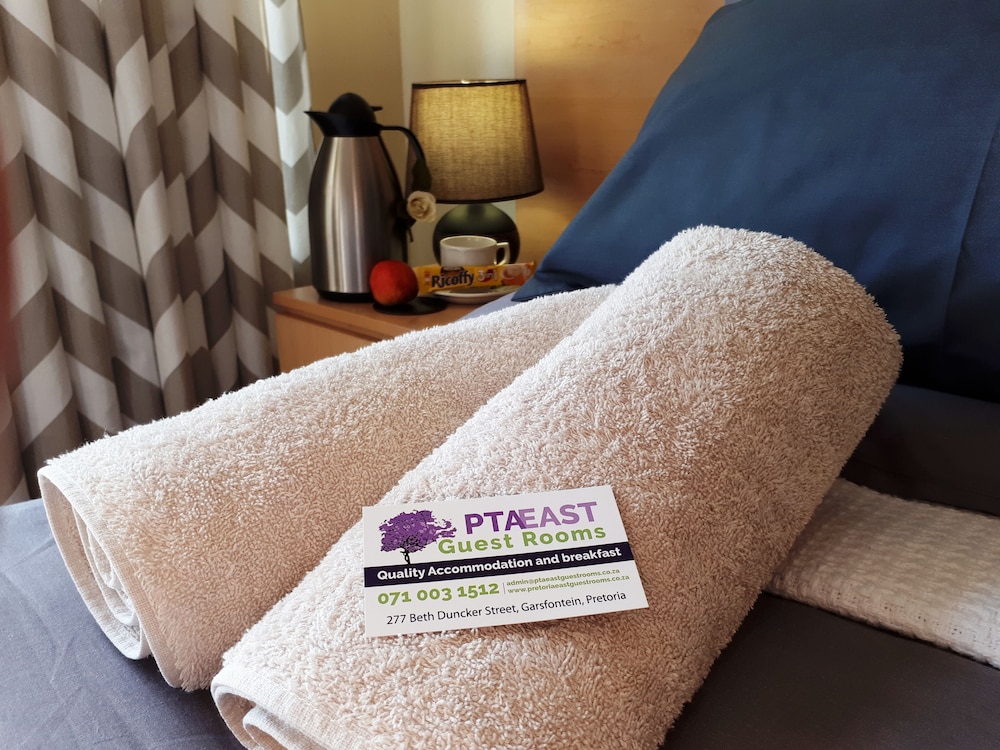 Located in Pretoria (Garsfontein), PTA East Guest Rooms is within a 15-minute walk of 19th Hole Putt-Putt and Zita Park. This casino bed & breakfast is 0.9 mi (1.5 km) from Menlyn Corporate Park and 0.9 mi (1.5 km) from South African Local Government Association. Make yourself at home in one of the 7 guestrooms featuring refrigerators and minibars. Prepare your meals in the shared/communal kitchen. LCD televisions with satellite programming provide entertainment, while complimentary wireless internet access keeps you connected. Conveniences include safes and complimentary newspapers, and housekeeping is provided daily. Distances are displayed to the nearest 0.1 mile and kilometer.