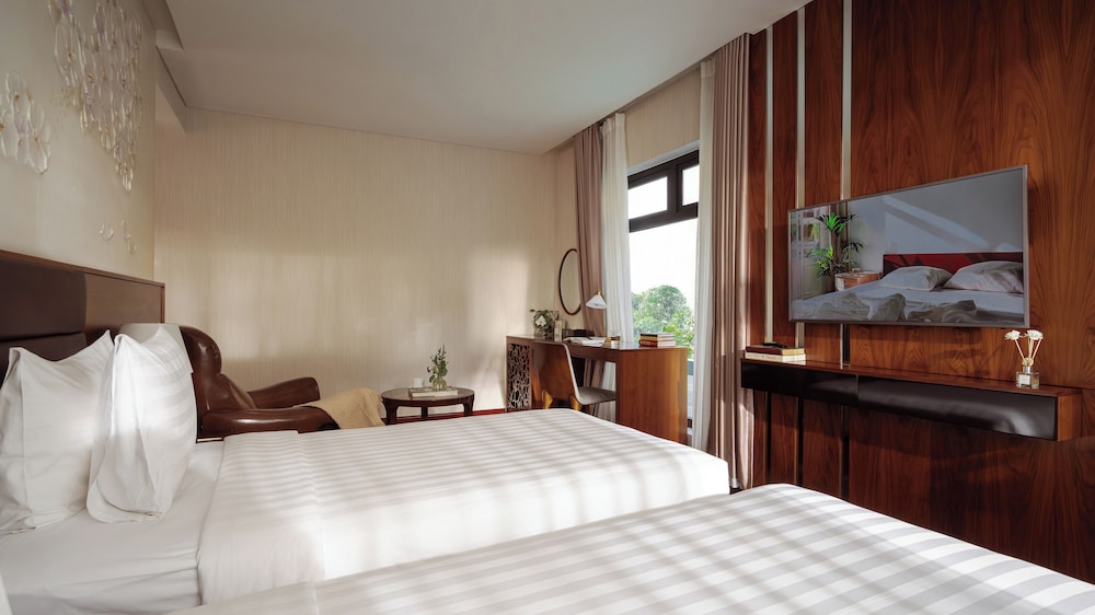 Featured amenities include a business center, complimentary newspapers in the lobby, and dry cleaning/laundry services. A roundtrip airport shuttle is provided for a surcharge (available 24 hours), and free self parking is available onsite. Don't miss out on recreational opportunities including an outdoor pool and a fitness center. Additional features at this hotel include complimentary wireless internet access, concierge services, and a banquet hall. Grab a bite at one of the hotel's 2 restaurants, or stay in and take advantage of the room service (during limited hours). Wrap up your day with a drink at the bar/lounge. Cooked-to-order breakfasts are available daily from 6:30 AM to 9:30 AM for a fee.- Fee for cooked-to-order breakfast: approximately VND 259000 for adults and VND 259000 for children