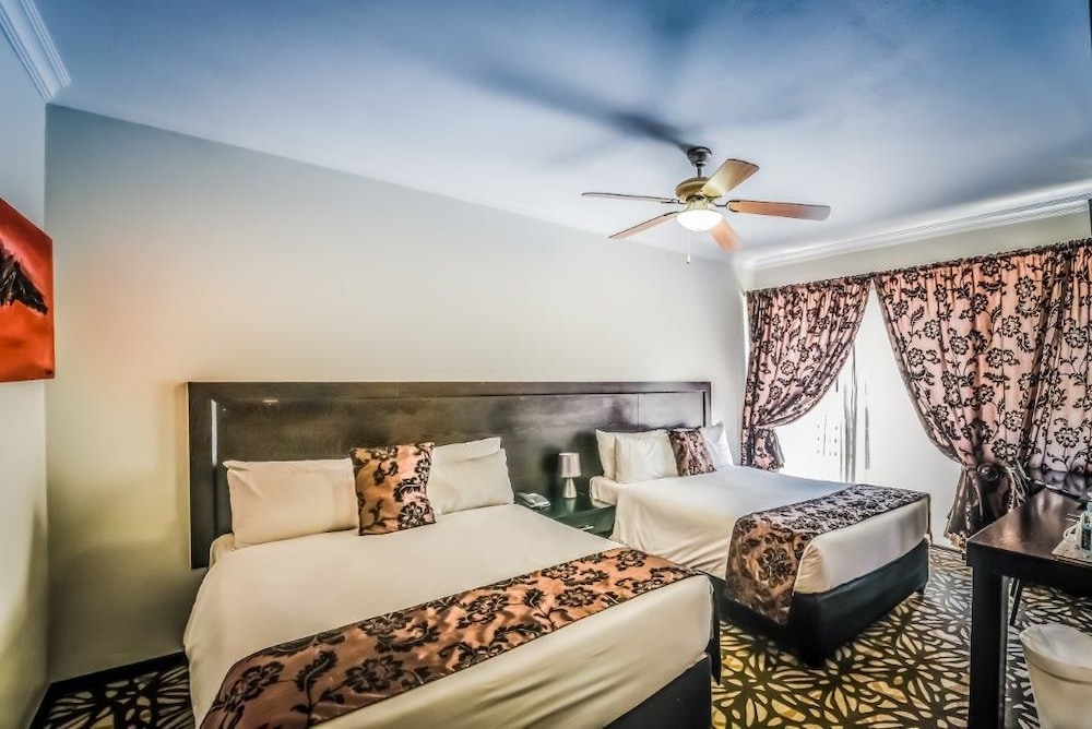 With a stay at The Lakes Hotel and Conference Centre in Benoni, you'll be next to a golf course, just steps from Benoni Lake Golf Course and a 3-minute drive from Lakeside Mall. This beach hotel is 1.6 mi (2.6 km) from St. Athanasios Greek Orthodox Church and 2.7 mi (4.4 km) from SAPS Mechanical School Golf Club. Make yourself at home in one of the 150 air-conditioned rooms featuring flat-screen televisions. Complimentary wireless internet access keeps you connected, and satellite programming is available for your entertainment. Bathrooms feature shower/tub combinations with rainfall showerheads and complimentary toiletries. Conveniences include phones, as well as safes and desks. Distances are displayed to the nearest 0.1 mile and kilometer.