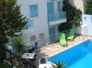 It is a very nice whitewashed building in Aegean architectural style. The annex building is more modern and has classical lines. The buildings surround the small pool and patio area, a very relaxing place to lounge in the shade..The hotel is tucked away in a quiet pedestrianized area of the fishing village of Agia Pelagia, about 22 km from Heraklion and its airport. The beach is only 50 m away.