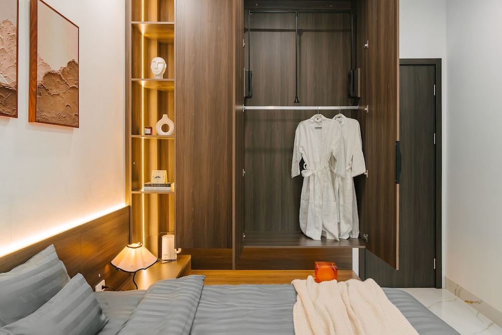 With a stay at Tamundi Embassy - Diplomatic Quarter - West Lake Hanoi in Hanoi (Bac Tu Liem), you'll be a 3-minute drive from West Lake and 9 minutes from Ho Chi Minh Mausoleum. This luxury aparthotel is 5.8 mi (9.4 km) from Hoan Kiem Lake and 5.8 mi (9.4 km) from Hanoi Old Town Night Market. Make yourself at home in one of the 5 individually decorated guestrooms, featuring microwaves and minibars (stocked with some free items). Your memory foam bed comes with down comforters and Frette Italian sheets. Prepare your meals in the shared/communal kitchen. Wired and wireless internet access is complimentary, while 50-inch Smart televisions with cable programming provide entertainment. Private bathrooms with showers feature rainfall showerheads and designer toiletries. Distances are displayed to the nearest 0.1 mile and kilometer.