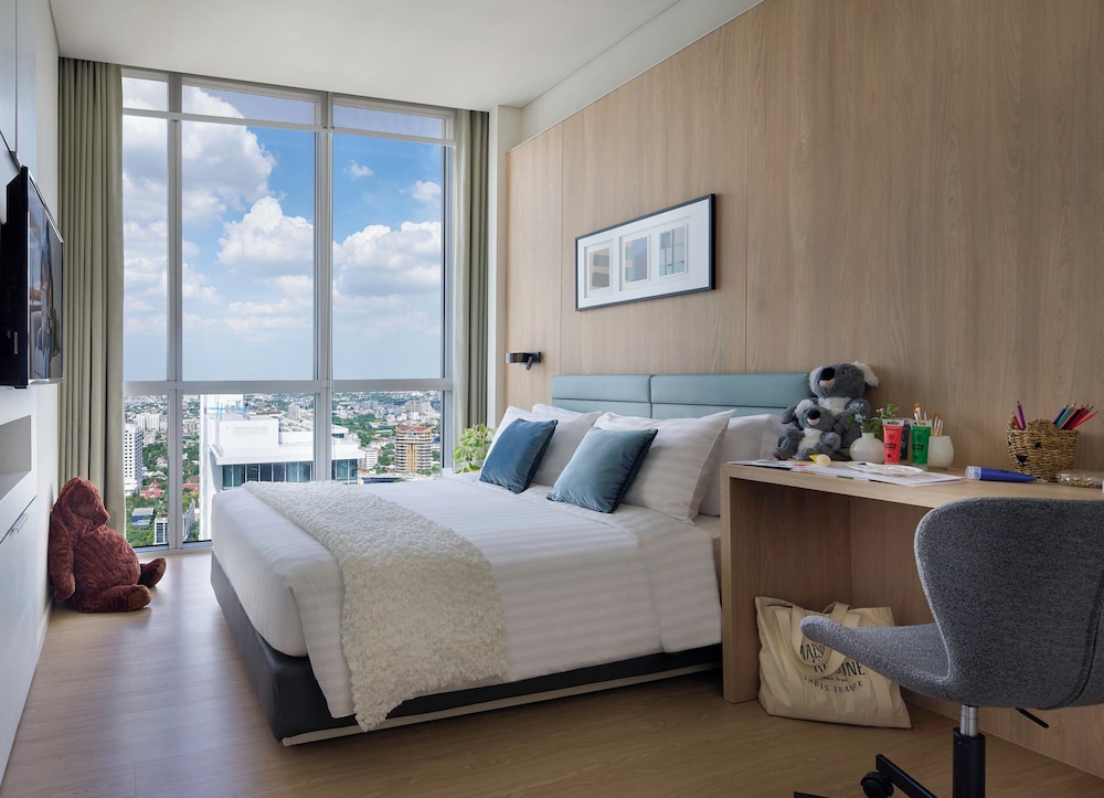 In the heart of Bangkok, Somerset Sukhumvit Thonglor Bangkok is within a 5-minute drive of Emporium and EmSphere Shopping Center. This family-friendly aparthotel is 1.9 mi (3 km) from EmQuartier and 2.7 mi (4.4 km) from Terminal 21 Shopping Mall. Make yourself at home in one of the 262 air-conditioned rooms featuring kitchens with full-sized refrigerators/freezers and stovetops. 43-inch LCD televisions with cable programming provide entertainment, while complimentary wireless internet access keeps you connected. Conveniences include phones, as well as safes and desks. Distances are displayed to the nearest 0.1 mile and kilometer.