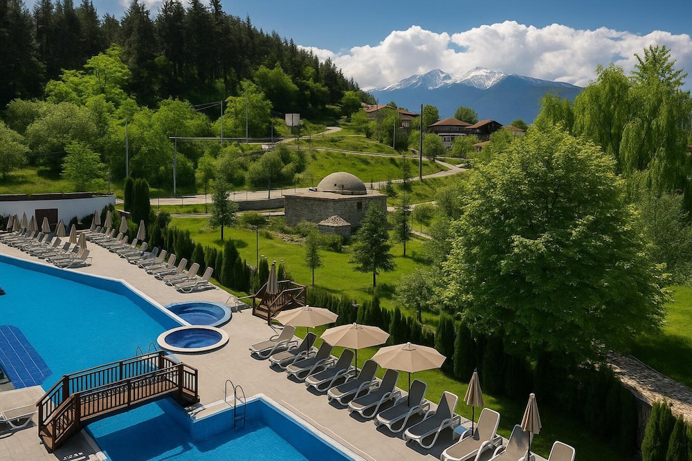 Located in Razlog, Regnum Banya Thermal Hotel is on the riverwalk, within a 10-minute drive of Holy Trinity Church and Paisii Hilendarski Historical Center. This family-friendly hotel is 4.9 mi (7.8 km) from Vihren and 5 mi (8.1 km) from Bansko Ski Resort. Make yourself at home in one of the 32 air-conditioned rooms featuring minibars and espresso makers. Your Select Comfort bed comes with premium bedding. Complimentary wireless internet access keeps you connected, and satellite programming is available for your entertainment. Private bathrooms with showers feature hair dryers and bathrobes. Distances are displayed to the nearest 0.1 mile and kilometer.