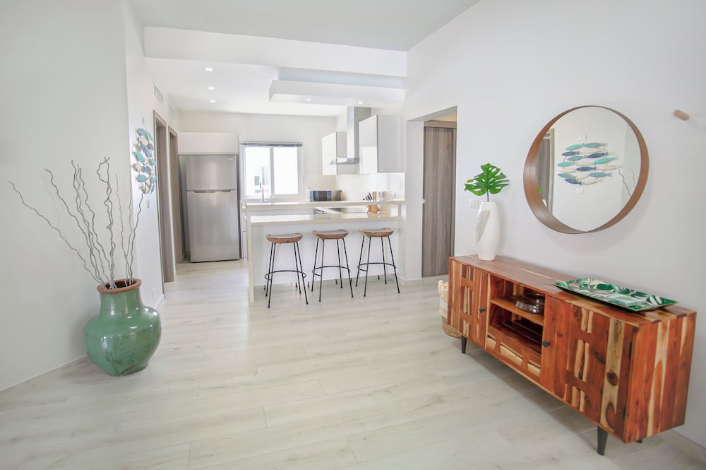 With a stay at Destination Jelly Playa Coral Condo in Punta Cana (Bávaro), you'll be a 4-minute drive from Cocotal Golf and Country Club and 9 minutes from Downtown Punta Cana. This beach aparthotel is 2.7 mi (4.3 km) from Bavaro Beach and 13 mi (20.9 km) from Punta Cana Beach. Make yourself at home in one of the 9 individually decorated guestrooms, featuring kitchens with refrigerators and ovens. 55-inch Smart televisions with digital programming provide entertainment, while complimentary wireless internet access keeps you connected. Conveniences include microwaves and coffee/tea makers, and housekeeping is provided on request. Distances are displayed to the nearest 0.1 mile and kilometer.