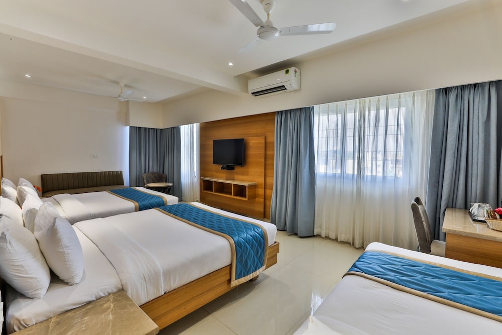 With a stay at HOTEL VBR GRAND INN in Bengaluru (Bangalore City Center), you'll be within a 10-minute drive of Bangalore Palace and M.G. Road. This hotel is 4 mi (6.5 km) from Bannerghatta Road and 7.1 mi (11.4 km) from Manyata Tech Park. Make yourself at home in one of the 75 air-conditioned rooms featuring minibars. Complimentary wireless internet access is available to keep you connected. Private bathrooms with showers feature complimentary toiletries and bidets. Conveniences include safes and desks, and housekeeping is provided daily. Distances are displayed to the nearest 0.1 mile and kilometer.