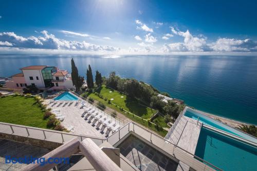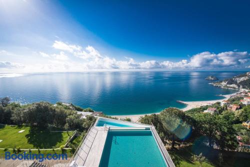 Offering an outdoor swimming pool, wellness center and restaurant, Dominio Mare Resort & SPA is located 0.9 mi from Bergeggi’s sandy beach. It offers self-catering accommodations with modern furnishings and free Wi-Fi. Offering a balcony or a garden, all air-conditioned apartments come with a flat-screen TV and a fully equipped kitchenette with a dishwasher. The private bathroom includes a shower and hairdryer. Guests can enjoy panoramic sea views on the terrace or enjoy a treatment in the Spa. An array of activities can be enjoyed in the surroundings, including diving, golf and mountain biking. Guests can visit Spotorno with its crystal-clear beaches, a 10-minute drive from Dominio Mare. Offering ferry links to Sardinia and Corsica, Savona Port is 6.2 mi from the property. Genova Airport is about 31 mi away.