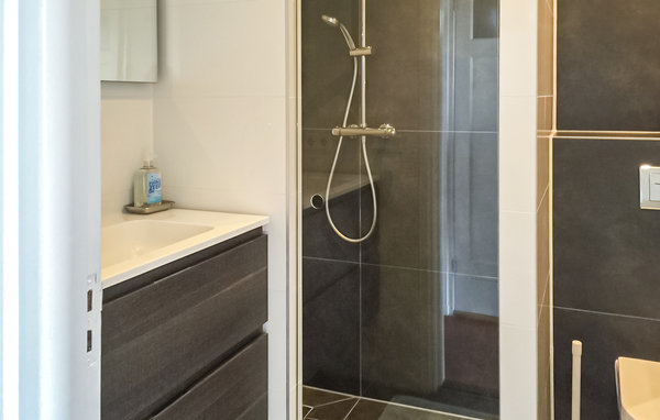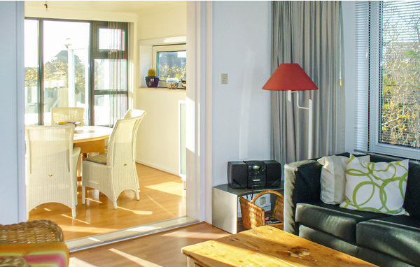 This separate part of the house has a cozy living room with a high ceiling, a fireplace and a beautiful view. It is equipped with a stereo system, a TV, a DVD player, wireless internet and plenty of seating. The open kitchen with a round dining table with 6 chairs is connected to the outdoor terrace by a glass wall with patio doors and is fully equipped with dishwasher, oven, gas stove with 4 burners, refrigerator with freezer. The beautiful sheltered terrace facing south with garden furniture and all-day sunshine is an ideal place for lounging.