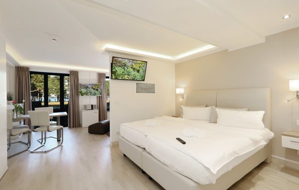The exclusive studio flat is the perfect domicile for a wonderful holiday for two or four on the beautiful island of Rügen. The flat is cleverly designed so that everything you need for a relaxing holiday can be found in a small space: the practical kitchenette with dining table, a sleeping area with a high-quality box-spring bed, a cosy, bright living area and of course the highlight of the studio: the private balcony with a view of the park-like garden, the rustic pine forest and the sparkling Baltic Sea beyond.
