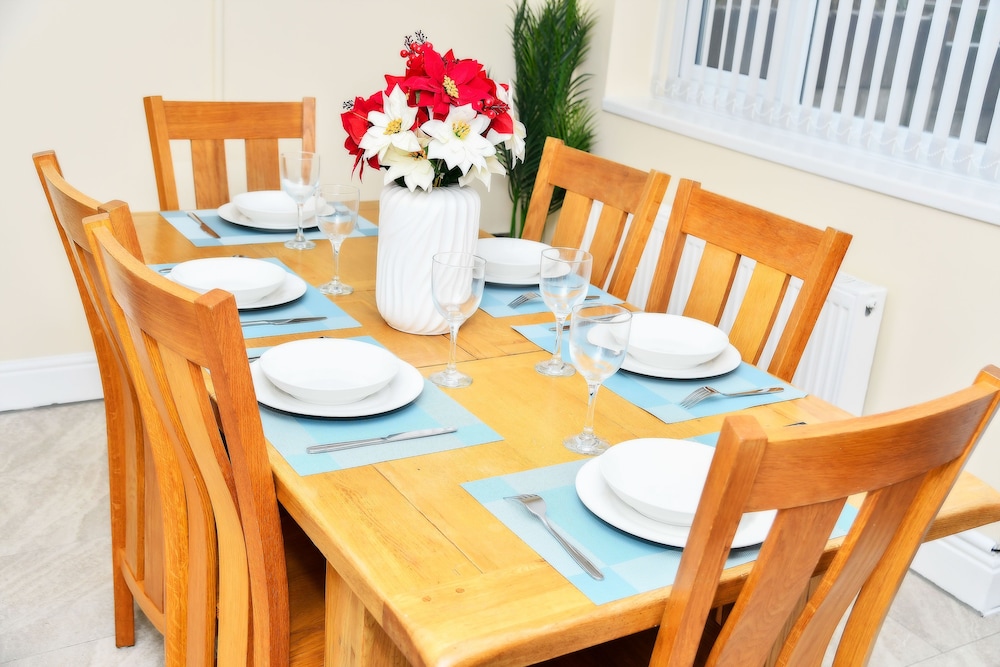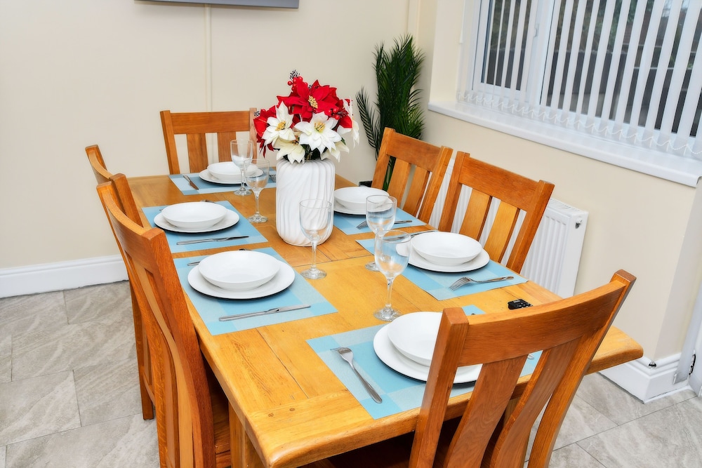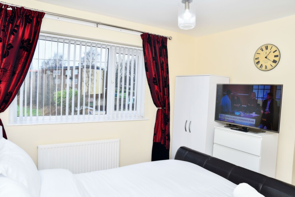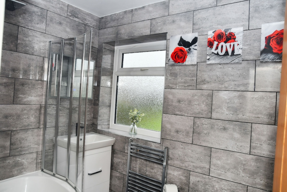 With a stay at stylish 6 bed home in Manchester, you'll be within a 15-minute drive of Heaton Park and Co-op Live Arena. This residence is 17 mi (27.3 km) from Peak District National Park and 17.1 mi (27.5 km) from Old Trafford. Stay in one of 6 guestrooms featuring flat-screen televisions. Prepare your meals in the shared/communal kitchen. Complimentary wireless internet access keeps you connected, and digital programming is available for your entertainment. Shared bathrooms with hair dryers are provided. Distances are displayed to the nearest 0.1 mile and kilometer.
