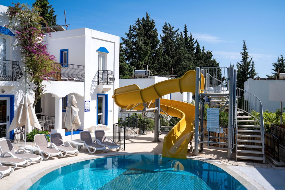 Located in Bodrum, Paloma Family Club is by the sea, a 1-minute drive from Bitez Beach and 6 minutes from Bodrum Marina. This family-friendly property is 3.1 mi (5 km) from Bodrum Ferry Terminal and 3.6 mi (5.7 km) from Bodrum Castle. Make yourself at home in one of the 104 air-conditioned rooms featuring refrigerators. Rooms have private balconies or patios. Cable television is provided for your entertainment. Private bathrooms with showers feature complimentary toiletries and hair dryers. Distances are displayed to the nearest 0.1 mile and kilometer.