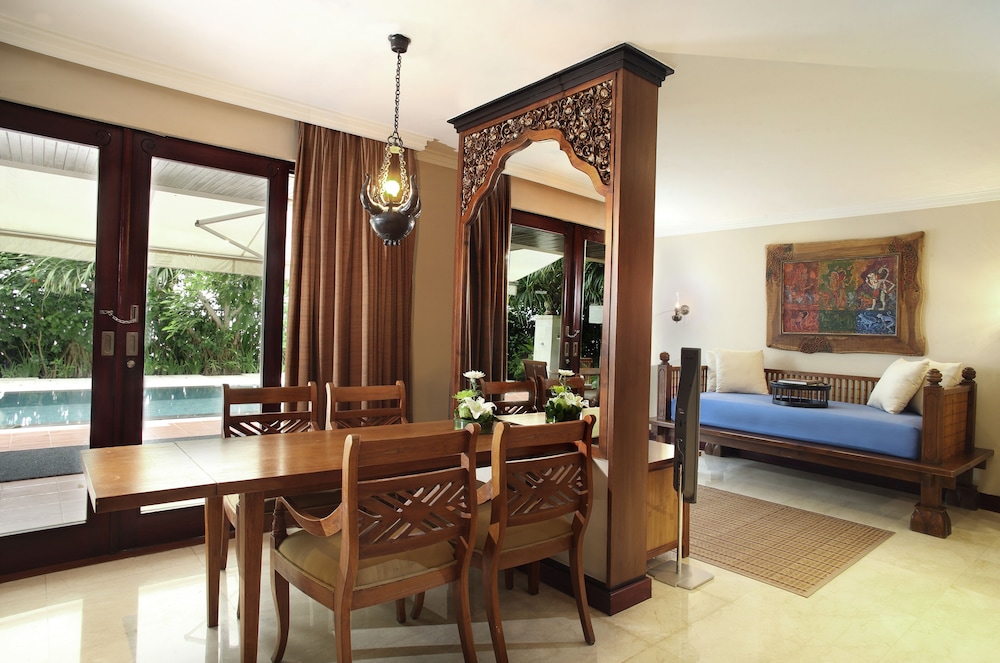 Featured amenities include complimentary wired internet access, a business center, and limo/town car service. Planning an event in Nusa Dua? This resort has 169488 square feet (15746 square meters) of space consisting of a conference center and 42 meeting rooms. A roundtrip airport shuttle is provided for a surcharge (available 24 hours). Relax at the full-service spa, where you can enjoy massages, body treatments, and facials. You're sure to appreciate the recreational amenities, which include 4 outdoor pools, a 24-hour health club, and a waterslide. This resort also features concierge services, babysitting (surcharge), and an arcade/game room. Guests can catch a ride on the complimentary shuttle, which operates within 13.8 kilometers. Enjoy seafood at Ikan Restaurant and Bar, a beachfront restaurant which features a bar/lounge, or stay in and take advantage of the 24-hour room service. Grab a drink at the swim-up bar while enjoying a refreshing dip in the resort pool.Buffet breakfasts are available daily from 6 AM to 10 AM for a fee. In accordance with local regulations, all visitors must remain within the property during Seclusion Day (Nyepi)/Hindu New Year for a 24-hour period (starting at 6 AM). Seclusion Day typically falls in March or April (dates subject to change each year). Check-in and check-out will not be possible on that date. Ngurah Rai Airport (Bali International Airport) is also closed on Seclusion Day.You'll be asked to pay the following charges at the property. Fees may include applicable taxes: