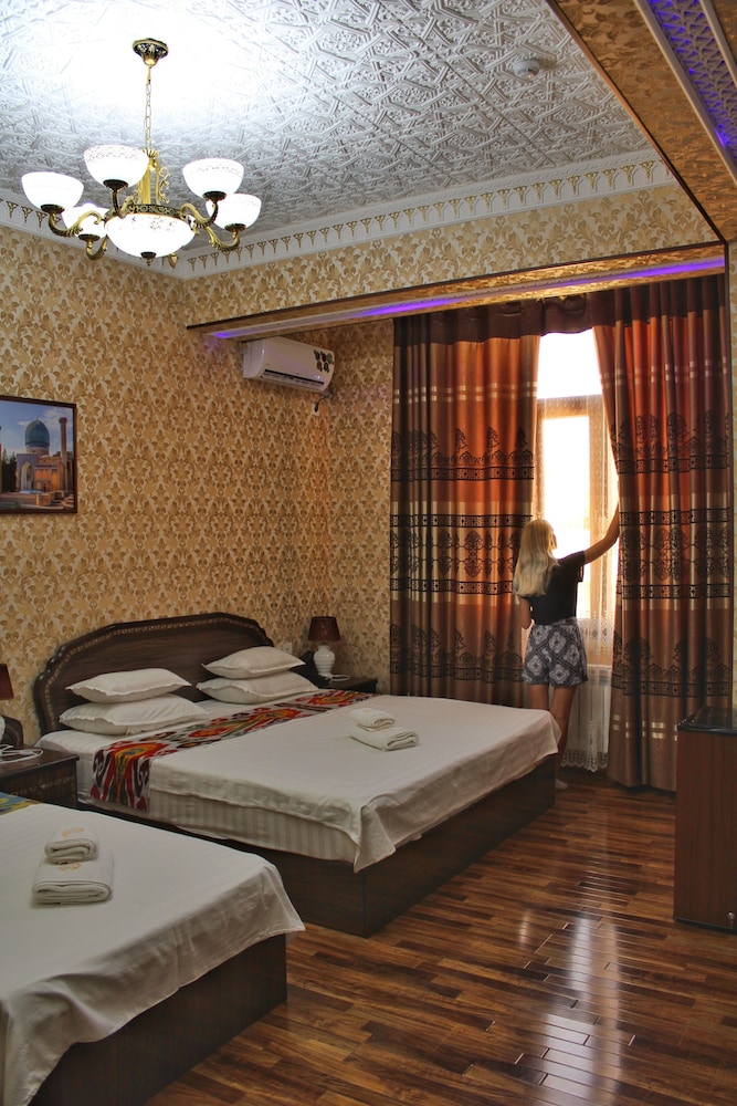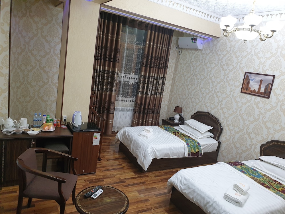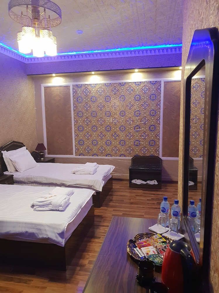 With a stay at Sharq Plaza in Bukhara, you'll be within a 10-minute walk of Nadir Divan-Beghi Madrasah and Lyab-i-Hauz. This hotel is 1 mi (1.6 km) from Chor-Minor and 1.6 mi (2.6 km) from Kalyan Minaret. Make yourself at home in one of the 16 guestrooms. Private bathrooms with showers feature complimentary toiletries and hair dryers. Conveniences include electric kettles, housekeeping is provided daily, and irons/ironing boards can be requested. Distances are displayed to the nearest 0.1 mile and kilometer.