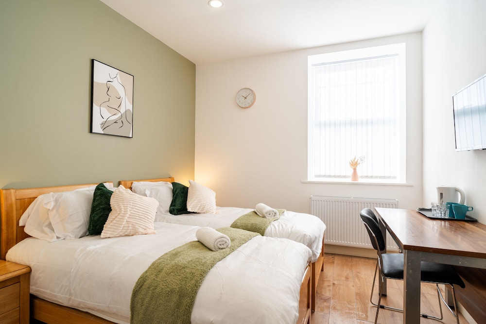 A stay at Innovation House places you in the heart of Burnley, within a 15-minute walk of Turf Moor and The Weavers' Triangle. This guesthouse is 1.2 mi (1.9 km) from Towneley Hall and 1.9 mi (3 km) from The Woodland Spa. Make yourself at home in one of the 12 guestrooms featuring microwaves and Smart televisions. Your room comes with a memory foam bed. Prepare your meals in the shared/communal kitchen. Complimentary wireless internet access keeps you connected, and digital programming is available for your entertainment. Private bathrooms with showers feature rainfall showerheads and hair dryers. Distances are displayed to the nearest 0.1 mile and kilometer.