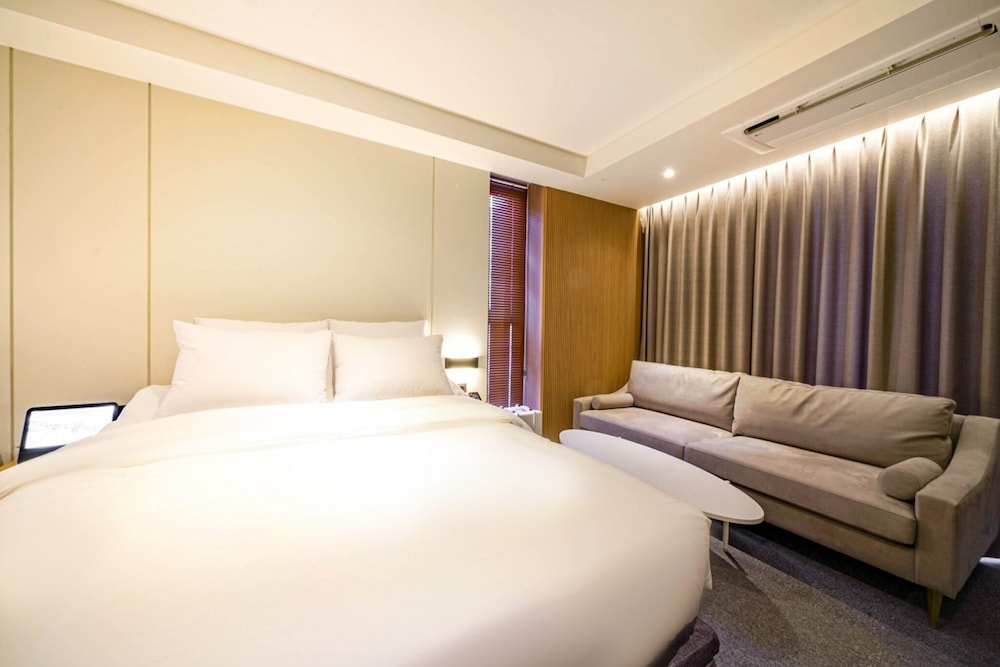Haeundae Thevan Hotel is centrally located in Busan, a 5-minute walk from Haeundae Beach and 6 minutes by foot from Dongbaek Island. This hotel is 0.4 mi (0.6 km) from The Bay 101 and 0.5 mi (0.7 km) from SEALIFE Busan Aquarium. Make yourself at home in one of the 60 individually decorated guestrooms, featuring refrigerators and Smart televisions. Your memory foam bed comes with down comforters and premium bedding. Complimentary wired and wireless internet access keeps you connected, and cable programming provides entertainment. Private bathrooms have deep soaking bathtubs and bidets. Distances are displayed to the nearest 0.1 mile and kilometer.