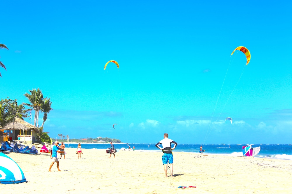 When you stay at KiteBeach Agualina Oceanfront Condo Complex in Hotel in Sosúa, you'll be on the beach, within a 10-minute walk of Cabarete Beach and Kite Beach. This beach hotel is 19.5 mi (31.4 km) from Playa Dorada and 7 mi (11.3 km) from Sosúa Beach. Make yourself at home in one of the 4 individually decorated guestrooms, featuring kitchenettes with stovetops and microwaves. Rooms have private furnished balconies. 32-inch LCD televisions with cable programming provide entertainment, while complimentary wireless internet access keeps you connected. Conveniences include safes and separate sitting areas, and housekeeping is provided on request. Distances are displayed to the nearest 0.1 mile and kilometer.