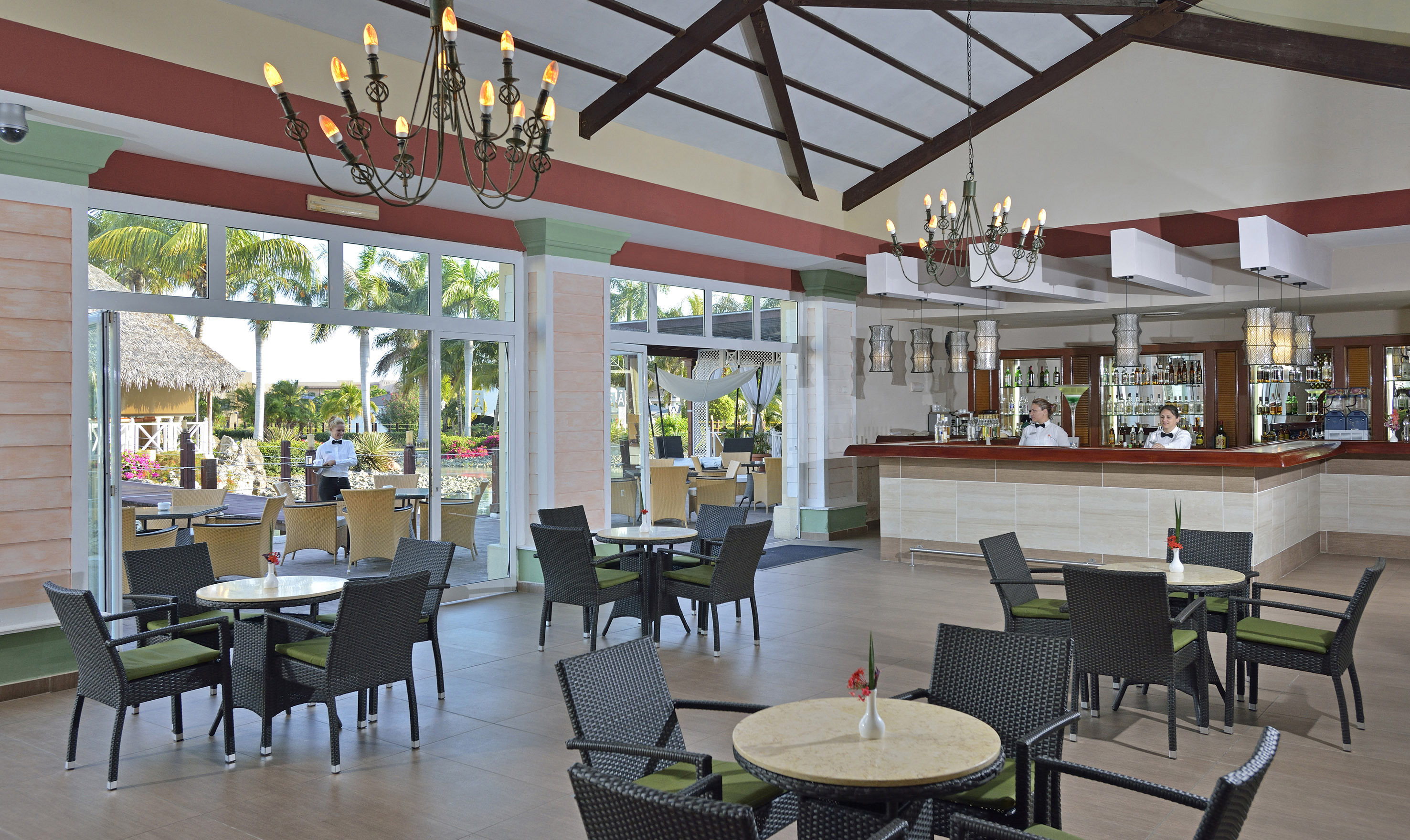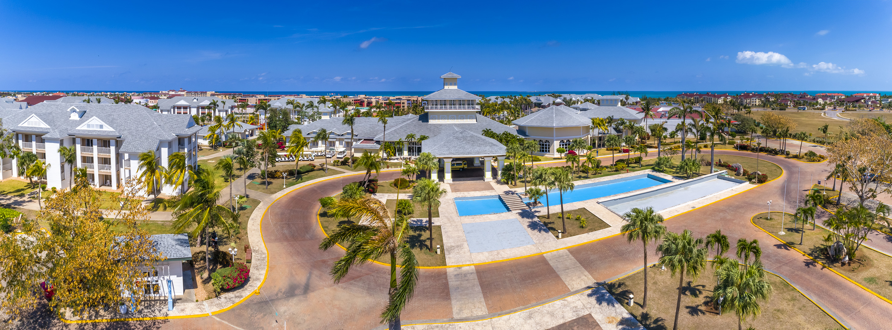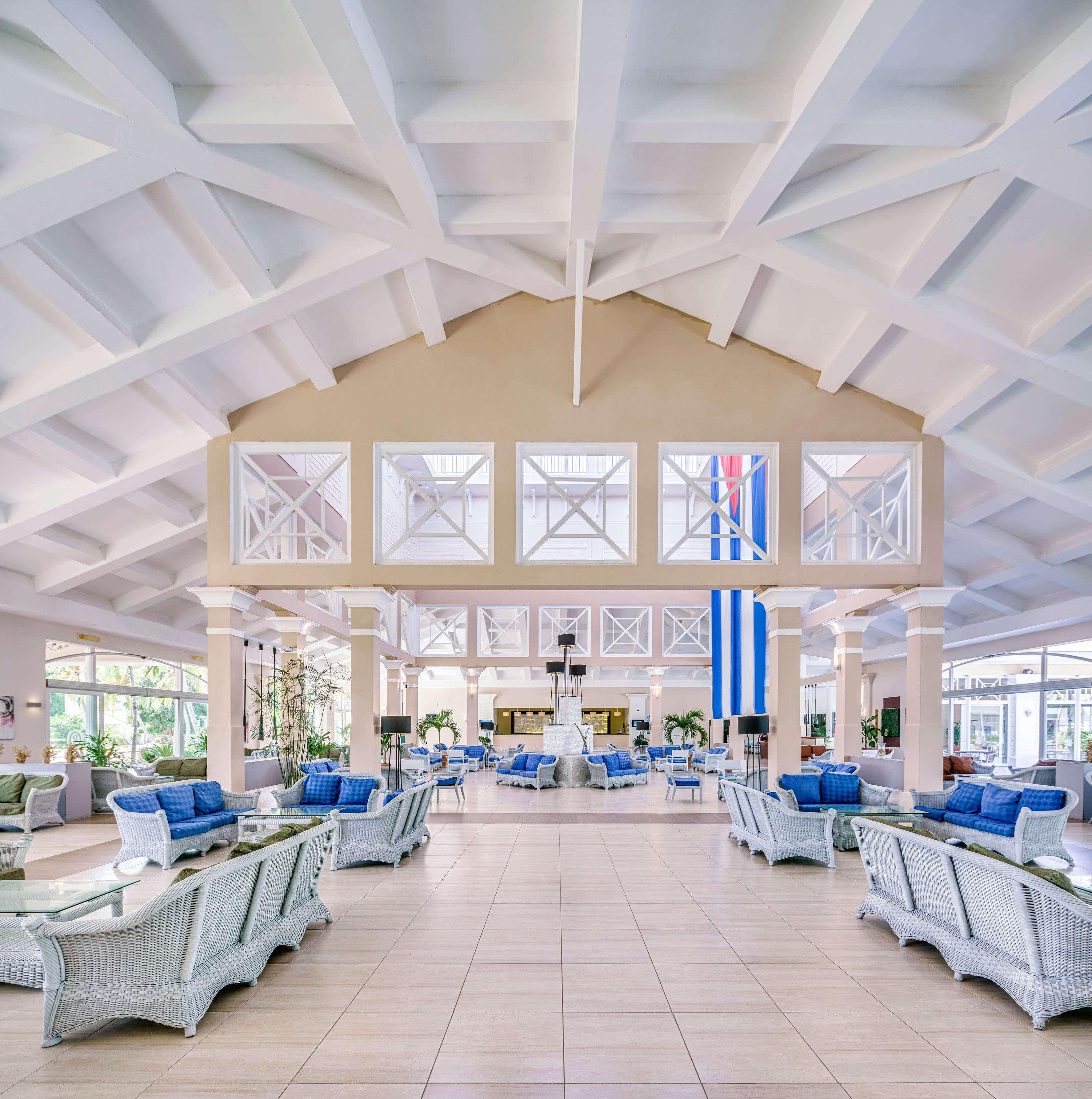 Its circular lobby with natural light and 3 panoramic levels with views of the artificial lake and beautiful hanging gardens is a main attraction of this five star all inclusive holiday resort located between Las Americas Resort, Meliá Las Americas and Sol Palmeras and a few metres from Varadero Golf Club and next to Plaza America Convention Centre.