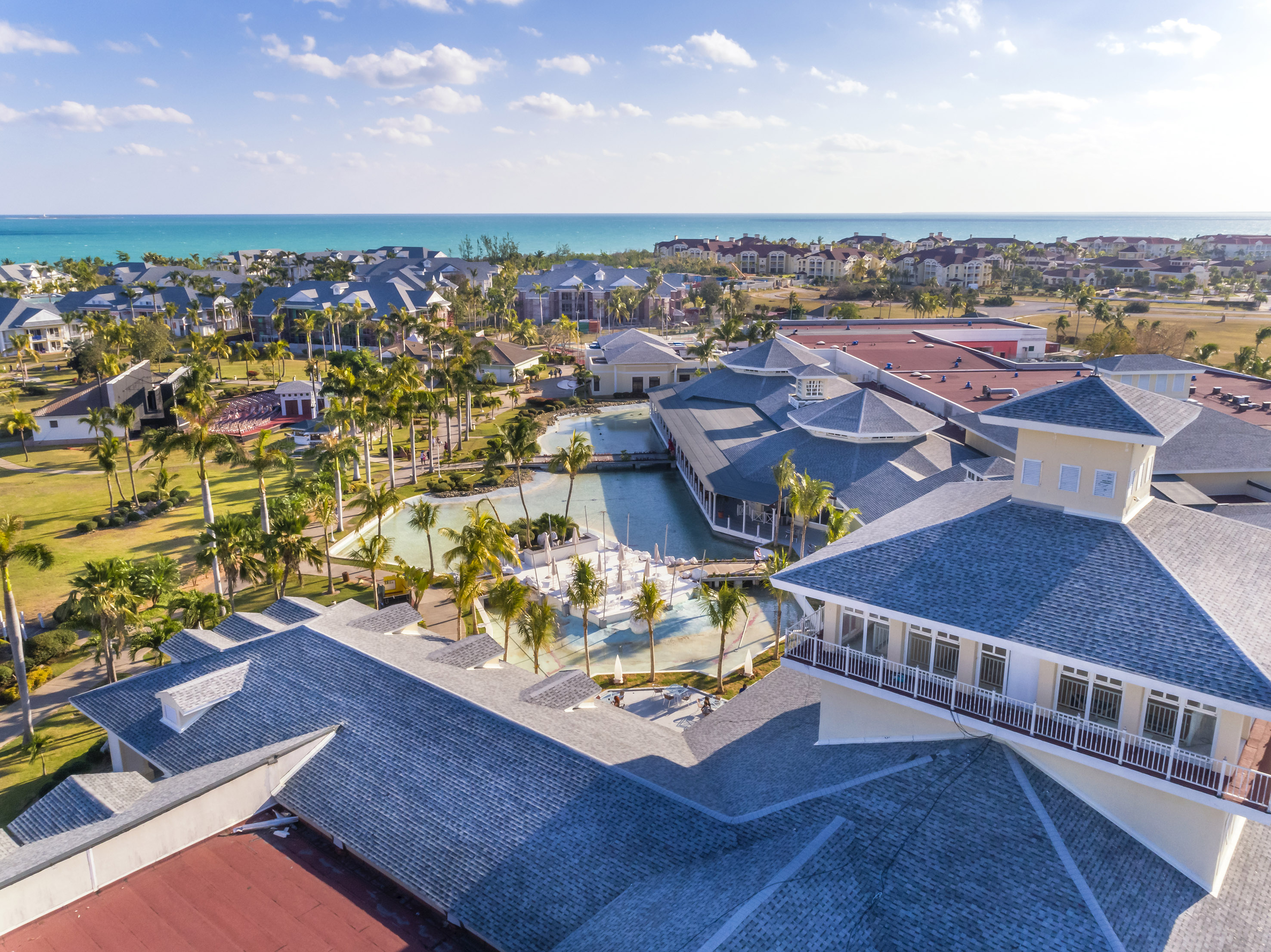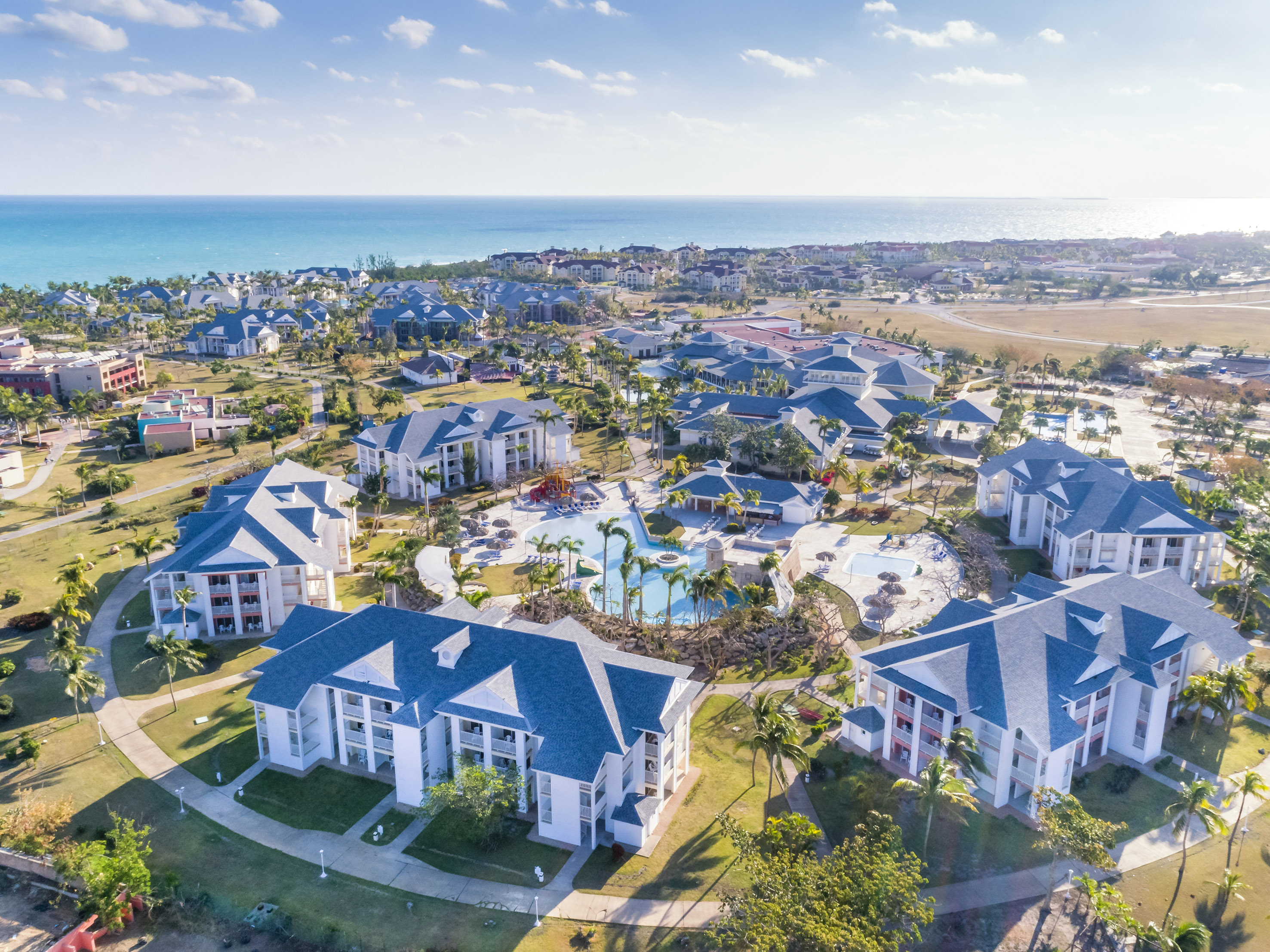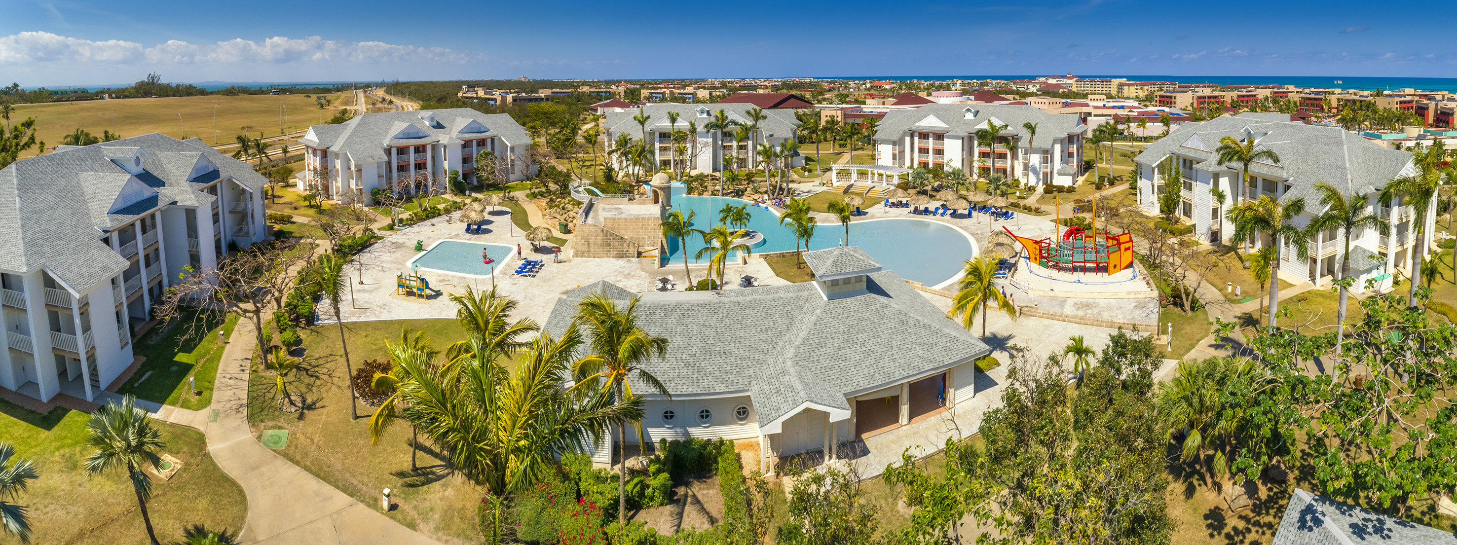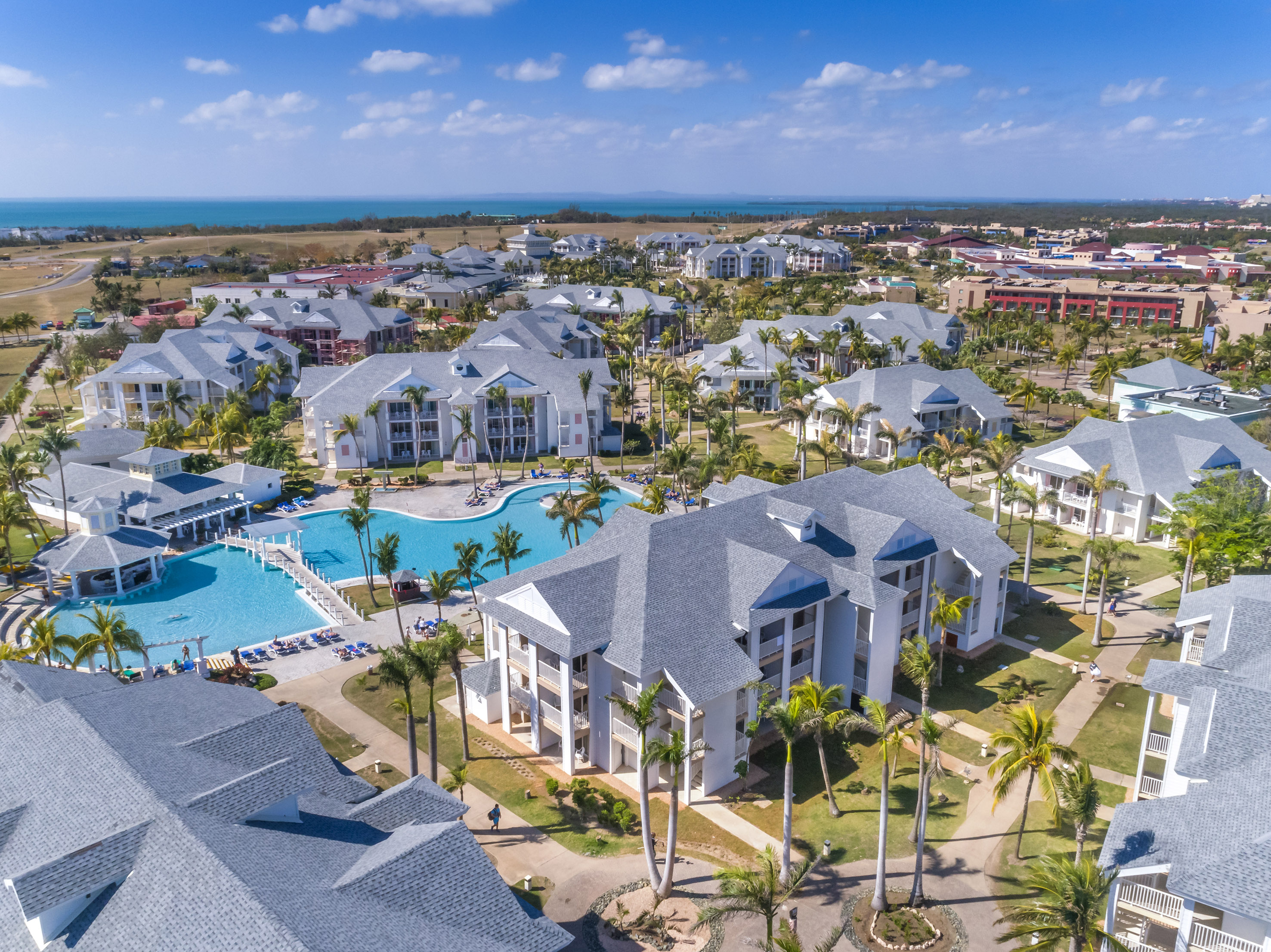 Its circular lobby with natural light and 3 panoramic levels with views of the artificial lake and beautiful hanging gardens is a main attraction of this five star all inclusive holiday resort located between Las Americas Resort, Meliá Las Americas and Sol Palmeras and a few metres from Varadero Golf Club and next to Plaza America Convention Centre.
