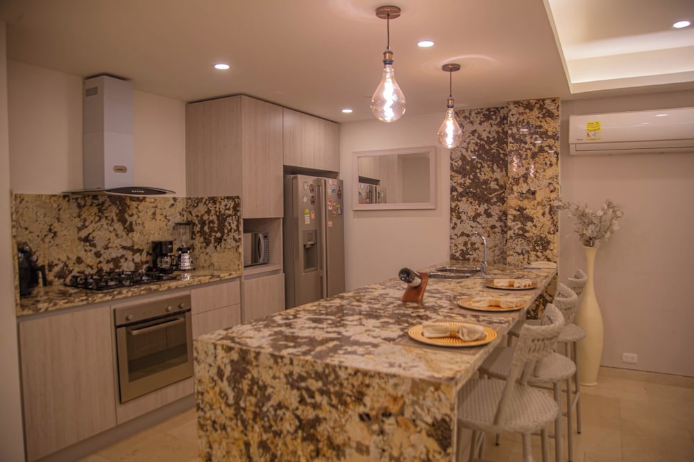 With a stay at San Diego 974 Suites, you'll be centrally located in Cartagena, steps from Centro Comercial La Serrezuela and Plaza de San Diego. This apartment is 1.7 mi (2.8 km) from Bocagrande Beach and 1.8 mi (2.9 km) from Cartagena de Indias Convention Center. Make yourself at home in one of the 20 individually furnished guestrooms, featuring kitchens. LED televisions with cable programming provide entertainment, while complimentary wireless internet access keeps you connected. Conveniences include safes and minibars. Distances are displayed to the nearest 0.1 mile and kilometer.