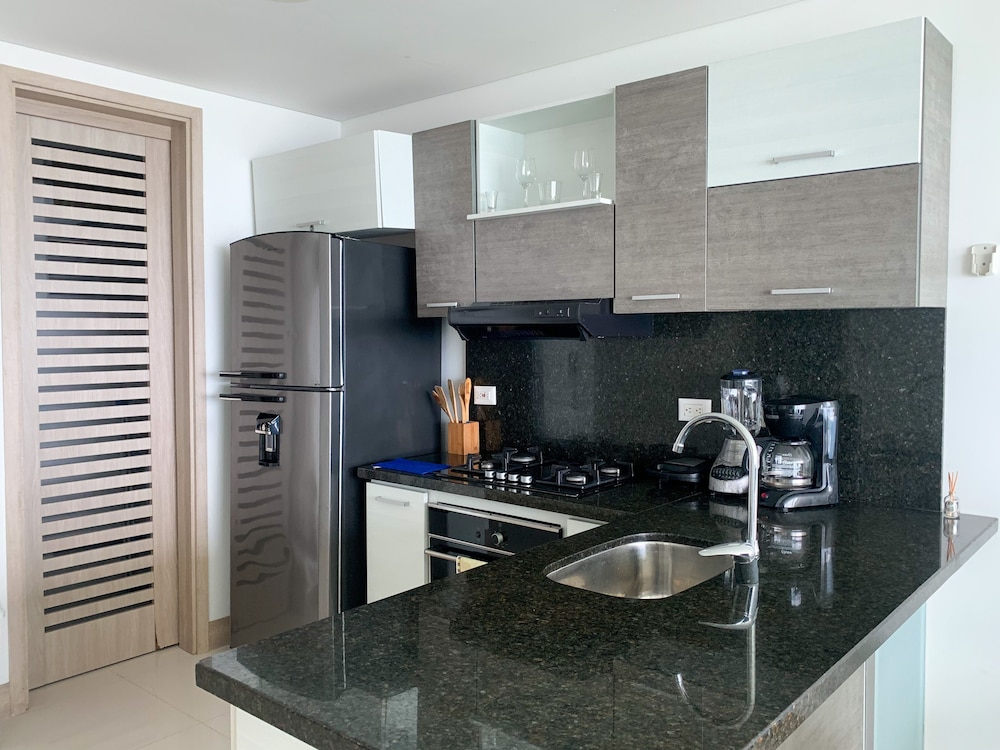 With a stay at this apartment in Cartagena (Manga), you'll be within a 15-minute drive of Clock Tower and Bocagrande Beach. This apartment is 0.1 mi (0.2 km) from Santa Cruz Marina and 0.6 mi (1 km) from Technological University of Bolívar. Your apartment features a flat-screen TV. Complimentary wireless internet access keeps you connected, and cable programming is available for your entertainment. Conveniences include a safe and a coffee/tea maker. Distances are displayed to the nearest 0.1 mile and kilometer.