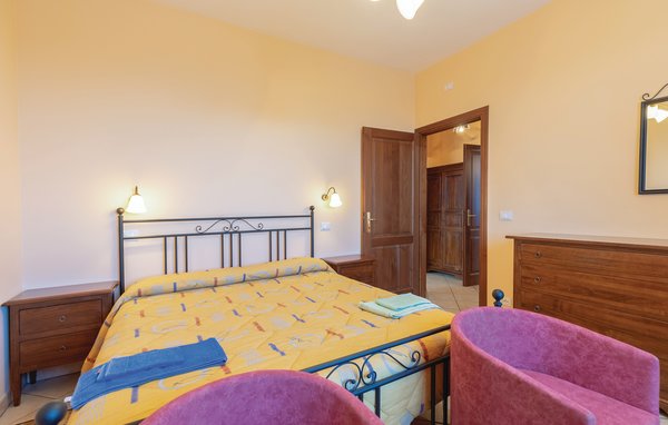 First floor apartment with living room with kitchenette and sofa bed, double bedroom, twin bedroom and bathroom with shower. The exclusive use of part of the garden with table and chairs. Large communal pool with sun loungers and umbrellas. Accessible also a bar and a gym. Located in Castiglione del Lago, thanks to its geographical position it is ideal for a relaxing vacation and good starting point for visiting the fascinating towns of Cortona, Montepulciano, Perugia, as well as discovering the gastronomic treasures of the region.