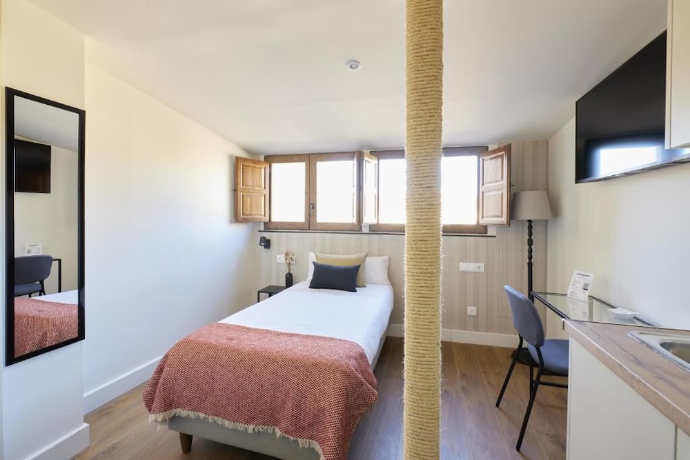 With a stay at Estudios Bordadores by Valdesierra in Salamanca (Salamanca Centro), you'll be steps from Estatua de Miguel de Unamuno and Las Ursulas Convent and Museum. This aparthotel is 0.1 mi (0.1 km) from Monterrey Palace and 0.1 mi (0.1 km) from La Purisima Church. Make yourself at home in one of the 10 air-conditioned rooms featuring kitchens with stovetops and microwaves. Your bed comes with down comforters and premium bedding. Complimentary wireless internet access keeps you connected, and flat-screen televisions are provided for your entertainment. Conveniences include desks, and housekeeping is provided weekly. Distances are displayed to the nearest 0.1 mile and kilometer.