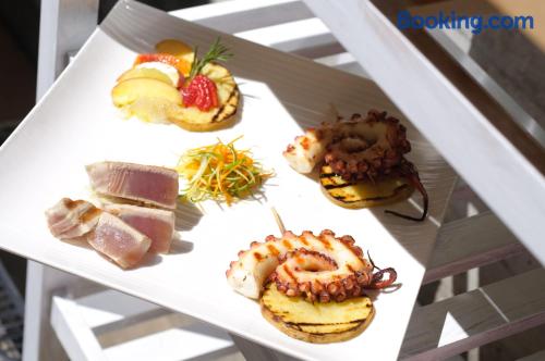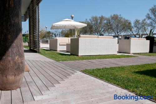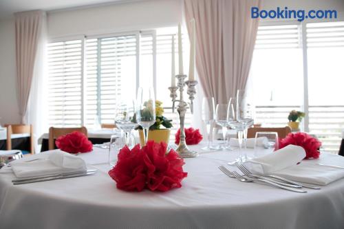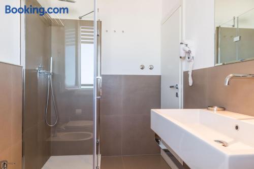 Located on the beachfront, Hotel Kiss offers modern accommodations in Cervia. Featuring a rooftop sun terrace, the property is a 5-minute walk from the pine forest of Pinarella. With free Wi-Fi, the air-conditioned rooms have a TV with satellite channels. The private bathroom includes a shower. A sweet and savory breakfast buffet is served daily. There is also a bar in the garden and a restaurant serving regional and Mediterranean cuisine. A bus which stops in front of the property takes you to Cervia Train Station and the Cervia hot springs.
