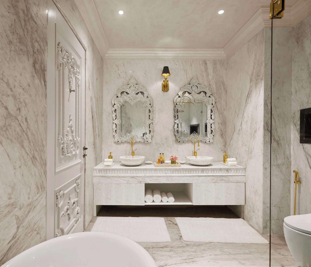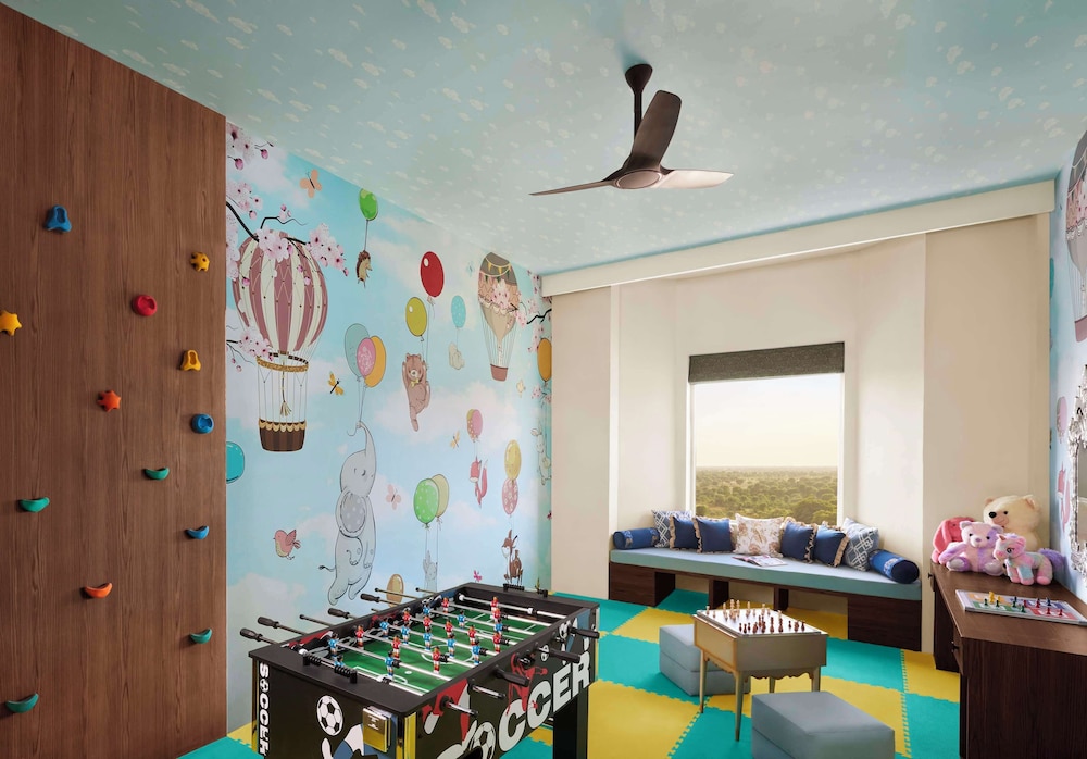 With a stay at Anantara Jewel Bagh Jaipur in Jaipur (Sitapura), you'll be a 5-minute drive from Chokhi Dhani and 7 minutes from Jaipur Exhibition and Convention Center. This luxury hotel is 8.3 mi (13.3 km) from Jain Mandir Sanganer and 9.6 mi (15.5 km) from Patrika Gate. Make yourself at home in one of the 150 air-conditioned rooms featuring minibars and LED televisions. Your bed comes with down comforters and premium bedding. Complimentary wireless internet access keeps you connected, and digital programming is available for your entertainment. Private bathrooms have complimentary toiletries and bidets. Distances are displayed to the nearest 0.1 mile and kilometer.