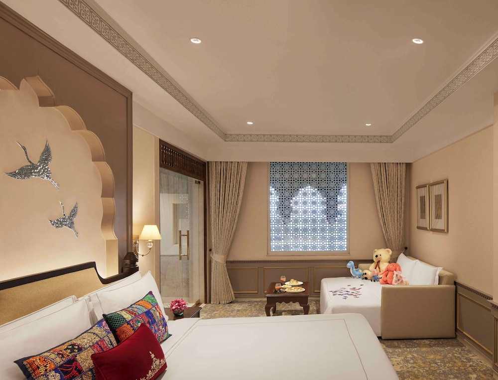 Featured amenities include dry cleaning/laundry services, a 24-hour front desk, and luggage storage. Event facilities at this hotel consist of a conference center and meeting rooms. A roundtrip airport shuttle is provided for a surcharge (available 24 hours), and free valet parking is available onsite. Relax at the full-service spa, where you can enjoy body treatments and facials. You're sure to appreciate the recreational amenities, including an outdoor pool, a hot tub, and a sauna. Additional amenities at this hotel include complimentary wireless internet access, concierge services, and a banquet hall. Enjoy a meal at the restaurant or snacks in the coffee shop/cafe. The hotel also offers 24-hour room service. Mingle with other guests at the complimentary reception, held daily. Relax with a refreshing drink from the poolside bar or one of the 2 bars/lounges. Buffet breakfasts are available daily from 7:30 AM to 10:30 AM for a fee.- Fee for buffet breakfast: approximately INR 1000 for adults and INR 500 for children