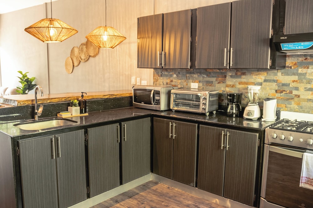 When you stay at El Xalli Hotel in Chiltiupan, you'll be near the beach and 10 minutes by car from El Palmarcito Beach. This luxury aparthotel is 6.7 mi (10.7 km) from Sunzal Beach and 8.8 mi (14.2 km) from El Majahual Beach. Make yourself at home in one of the 9 air-conditioned rooms featuring kitchens with full-sized refrigerators/freezers and ovens. 32-inch Smart televisions with digital programming provide entertainment, while complimentary wireless internet access keeps you connected. Conveniences include microwaves and coffee/tea makers, and housekeeping is provided daily. Distances are displayed to the nearest 0.1 mile and kilometer.