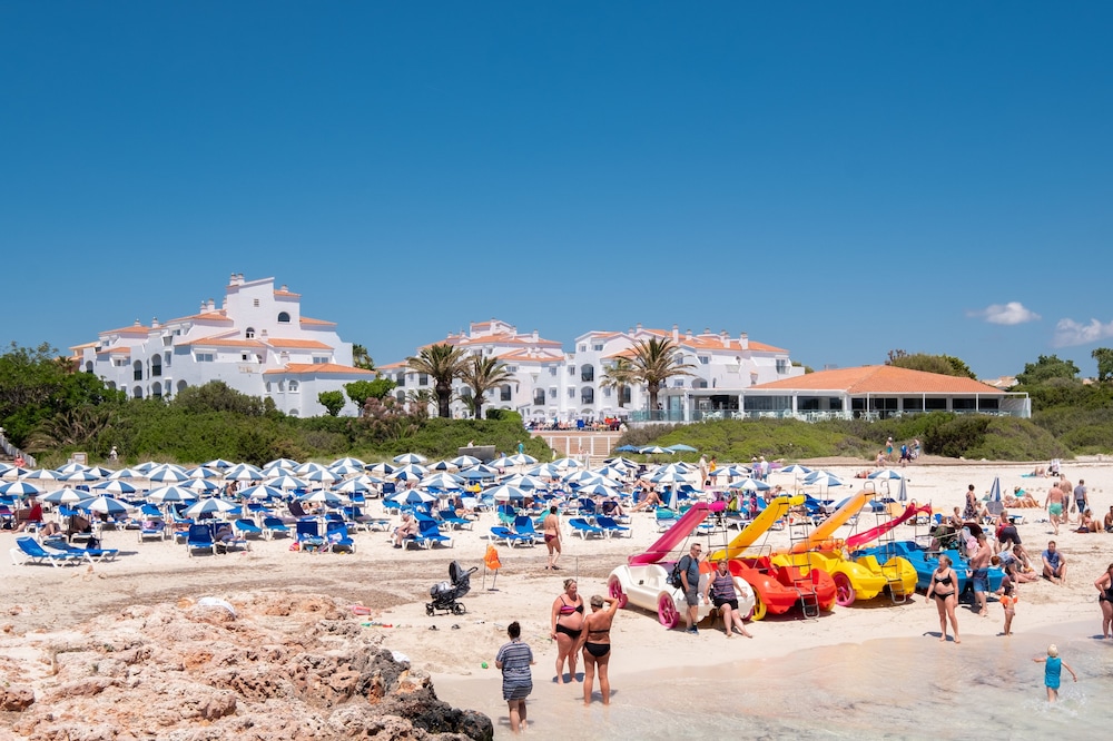 Located in Ciutadella de Menorca, Fergus Style Carema Beach is by the sea, a 1-minute drive from Aquarock Waterpark and 14 minutes from Cathedral of Menorca. This beach hotel is 8.6 mi (13.8 km) from Ciutadella Lighthouse and 12 mi (19.4 km) from Cala Turqueta. Make yourself at home in one of the 164 guestrooms, featuring kitchenettes with refrigerators and microwaves. Rooms have private furnished balconies or patios. Flat-screen televisions with satellite programming provide entertainment, while complimentary wireless internet access keeps you connected. Conveniences include phones, as well as safes and desks. Distances are displayed to the nearest 0.1 mile and kilometer.