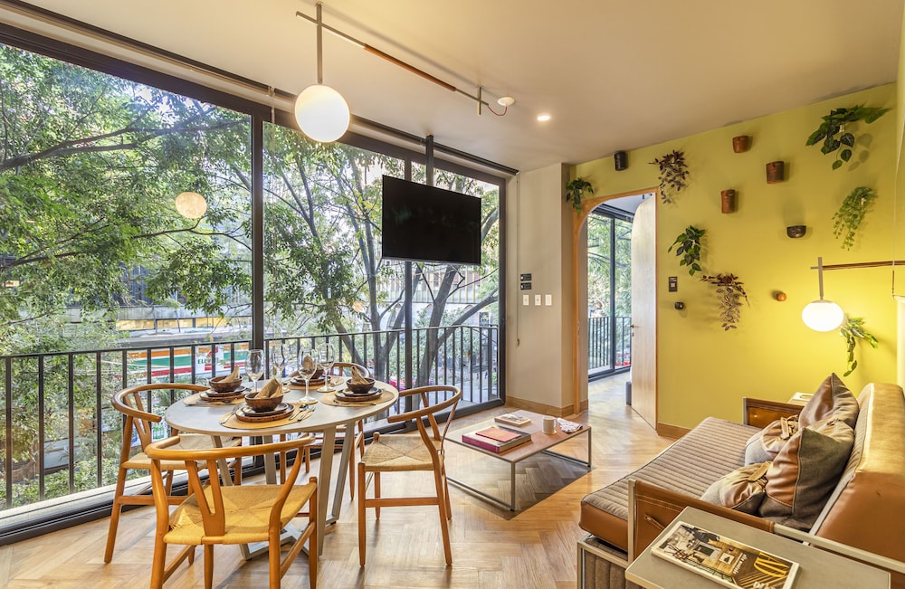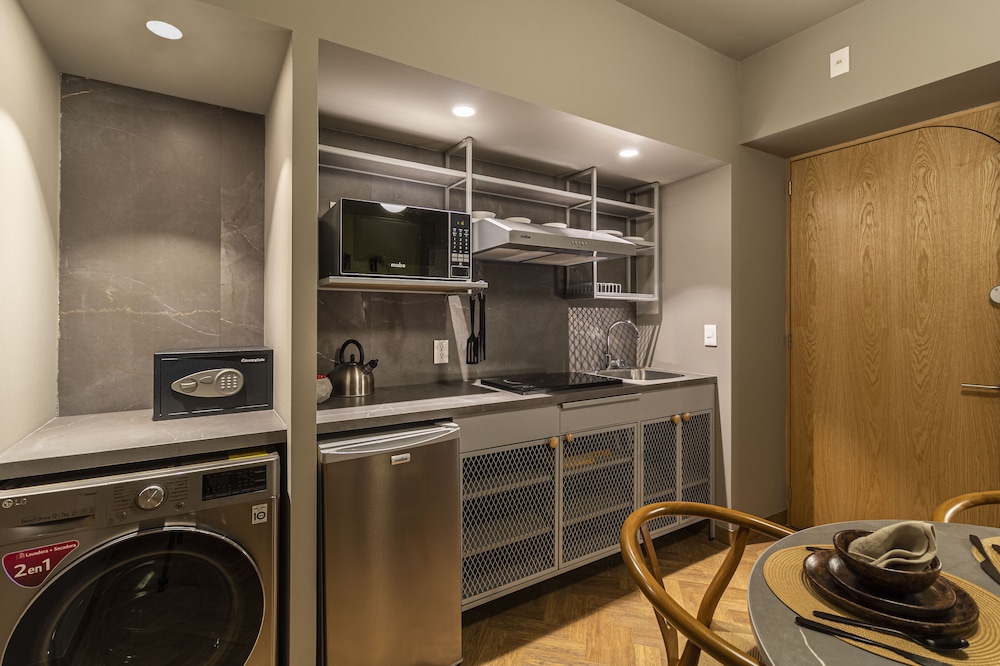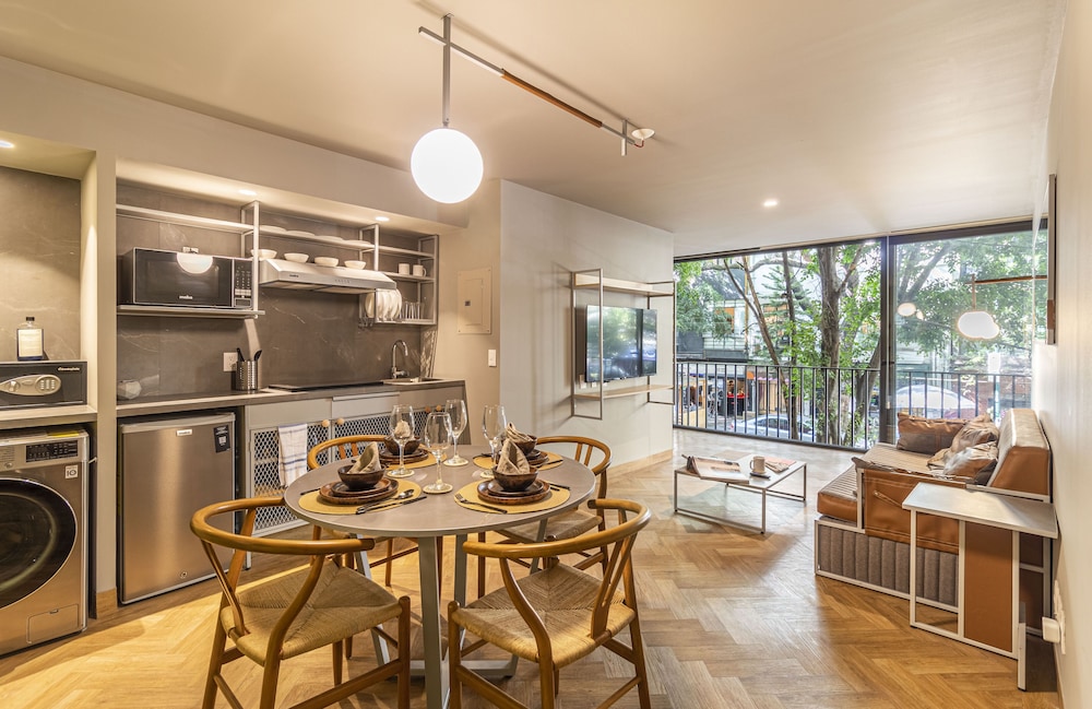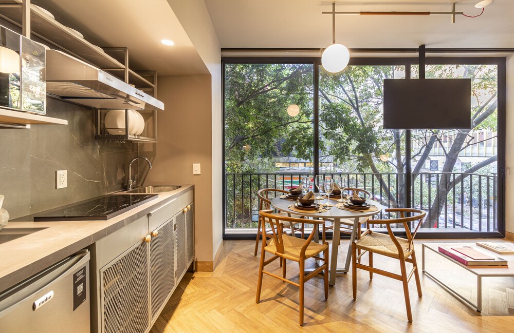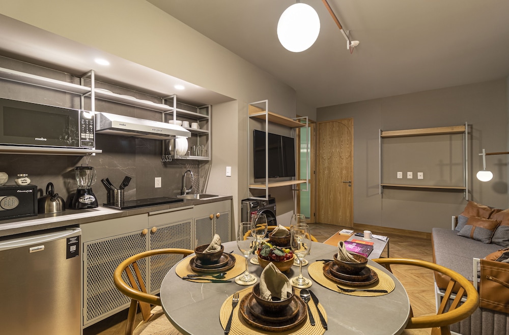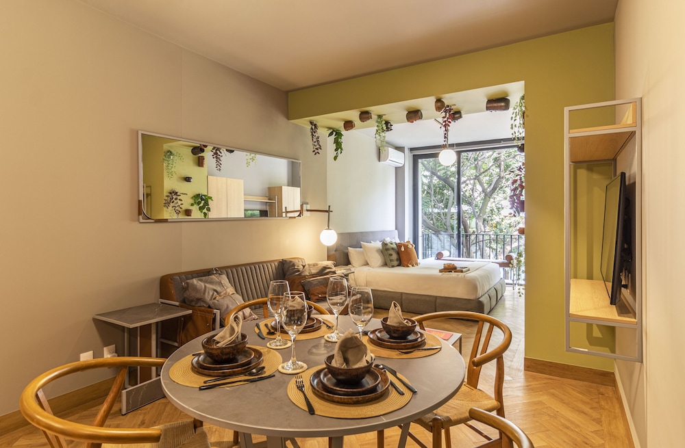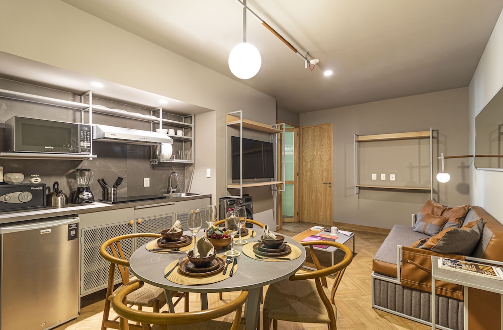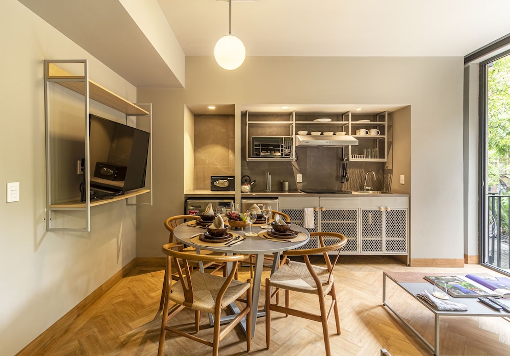 Located in Mexico City (Reforma), Casa Londres by Kukun is within a 10-minute walk of Angel of Independence Monument and Paseo de la Reforma. This luxury aparthotel is 0.5 mi (0.8 km) from U.S. Embassy and 2.3 mi (3.6 km) from Palacio de Bellas Artes. Make yourself at home in one of the 42 air-conditioned rooms featuring kitchenettes with refrigerators and stovetops. Rooms have private balconies or patios. 50-inch Smart televisions with cable programming provide entertainment, while complimentary wireless internet access keeps you connected. Conveniences include laptop-compatible safes and desks, and housekeeping is provided once per stay. Distances are displayed to the nearest 0.1 mile and kilometer.