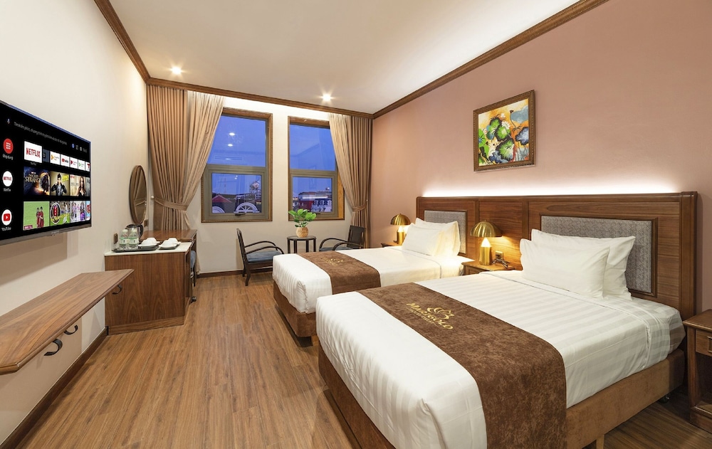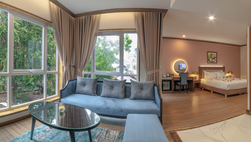 A stay at Marigold Hotel Dalat places you in the heart of Da Lat, within a 15-minute walk of Da Lat Market and Linh Son Pagoda. This hotel is 0.7 mi (1.2 km) from Ho Xuan Huong Lake Da Lat and 0.9 mi (1.4 km) from University of Dalat. Make yourself at home in one of the 60 individually furnished guestrooms, featuring minibars and flat-screen televisions. Complimentary wireless internet access keeps you connected, and cable programming is available for your entertainment. Private bathrooms with showers feature rainfall showerheads and complimentary toiletries. Conveniences include safes and desks, as well as phones with free local calls. Distances are displayed to the nearest 0.1 mile and kilometer.