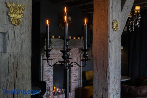 Ter Polders offers a homey atmosphere along the beautiful Damse Vaart canal. There is a lovely terrace for warm months and free Wi-Fi.The cosy rooms have wooden floors and pretty views on the surrounding landscape.Each room has a private bathroom.The breakfast buffet is complimentary and served in the breakfast room. When weather is nice you can eat outside on the terrace. The restaurant has a fireplace and serves seasonal dishes.From Ter Polders, Knokke with its beach and historic Bruges are less than 10 km away. There are various walking routes and bike tours in the area.