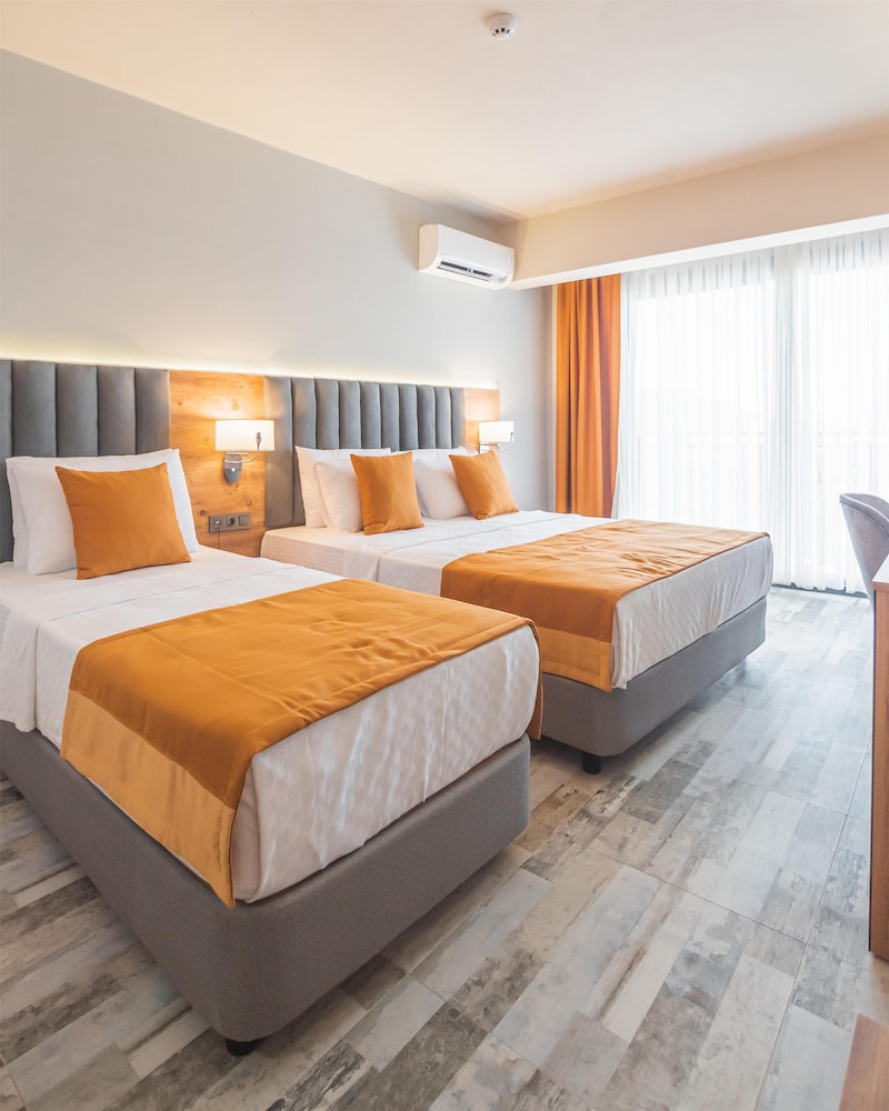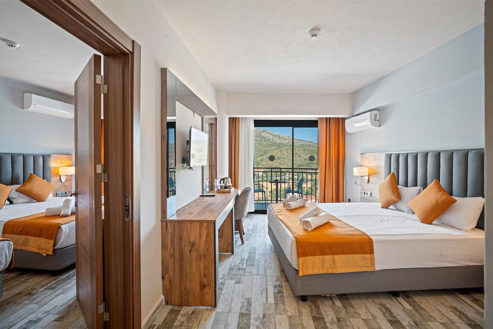 With a stay at Dalya Resort Aqua & Spa Hotel in Datça (Datça City Center), you'll be within a 10-minute drive of Datca Beach and Datca Port. This beach hotel is 14.3 mi (23.1 km) from Symi Port and 1.7 mi (2.8 km) from Kargı Koyu. Make yourself at home in one of the 148 air-conditioned rooms featuring minibars (stocked with some free items) and LCD televisions. Complimentary wireless internet access keeps you connected, and satellite programming is available for your entertainment. Bathrooms have complimentary toiletries and hair dryers. Conveniences include safes and coffee/tea makers, as well as phones with free local calls. Distances are displayed to the nearest 0.1 mile and kilometer.