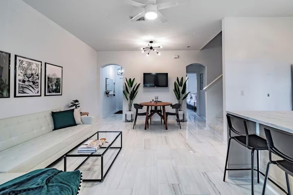 With a stay at 3BR Townhouse at Regal Palms: Pool & Disney Fun in Davenport (Regal Palms), you'll be within a 15-minute drive of ChampionsGate Golf Club and Flamingo Crossings Town Center. This guesthouse is 10.1 mi (16.2 km) from Walt Disney World® Resort and 11.7 mi (18.9 km) from Disney's Animal Kingdom® Theme Park. Make yourself at home in one of the guestrooms, featuring kitchens. Distances are displayed to the nearest 0.1 mile and kilometer.